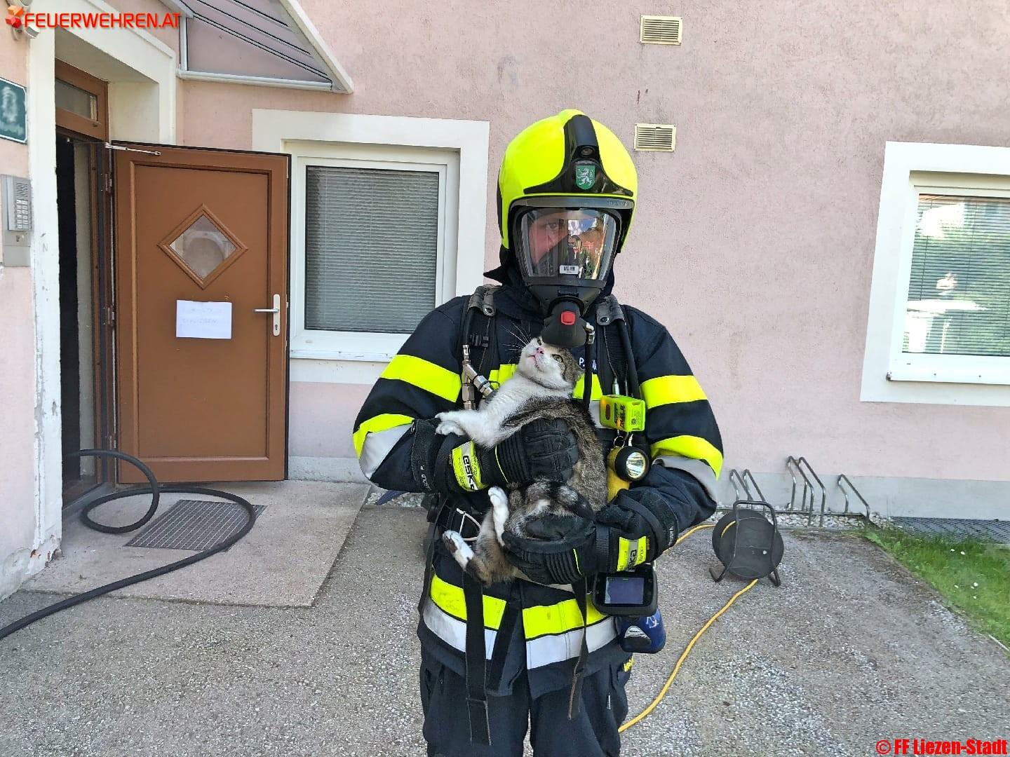 Das Stiegenhaus sowie die Wohnung waren stark verraucht. Unter Verwendung von schwerem Atemschutz und einem HD-Rohr wurde sofort mit dem Innenangriff begonnen. Bei den Löscharbeiten konnte zudem eine sich in dem Brandraum befindliche Katze gerettet werden. Die Bewohner der Wohnung konnten sich selbstständig in das Freie retten, wobei zwei Personen mit Verdacht auf Rauchgasvergiftung vom Roten Kreuz versorgt und abtransportiert wurden.