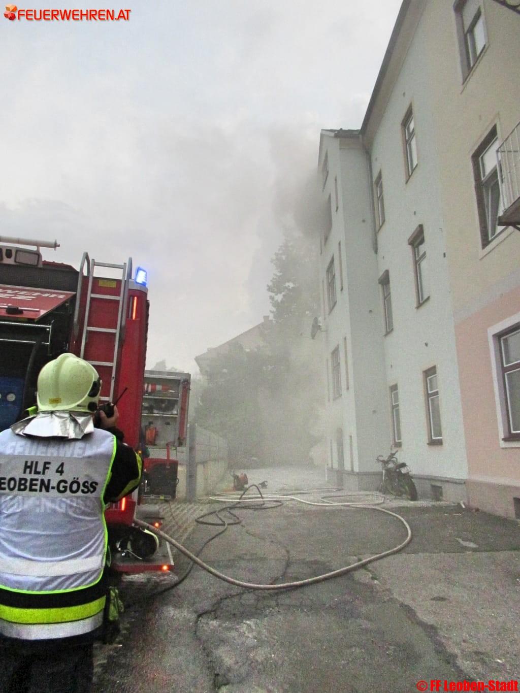 Am 03.07.2018 um 20:03 Uhr alarmierte die Bereichsfunkleitstelle Florian Leoben die Freiwillige Feuerwehr Leoben-Stadt und die Freiwillige Feuerwehr Leoben-Göß mit dem Alarmstichwort „B01-Brandverdacht“ zu einer Rauchentwicklung in einem Stiegenhaus in der Kärntnerstraße. Bei der Erkundung durch die ersteingetroffenen Einsatzkräfte stellte sich heraus, dass es zu einem Brand mit massiver Rauchentwicklung in einem Wohnhaus gekommen war, wobei nicht feststellbar war, wo sich der Brand befindet.