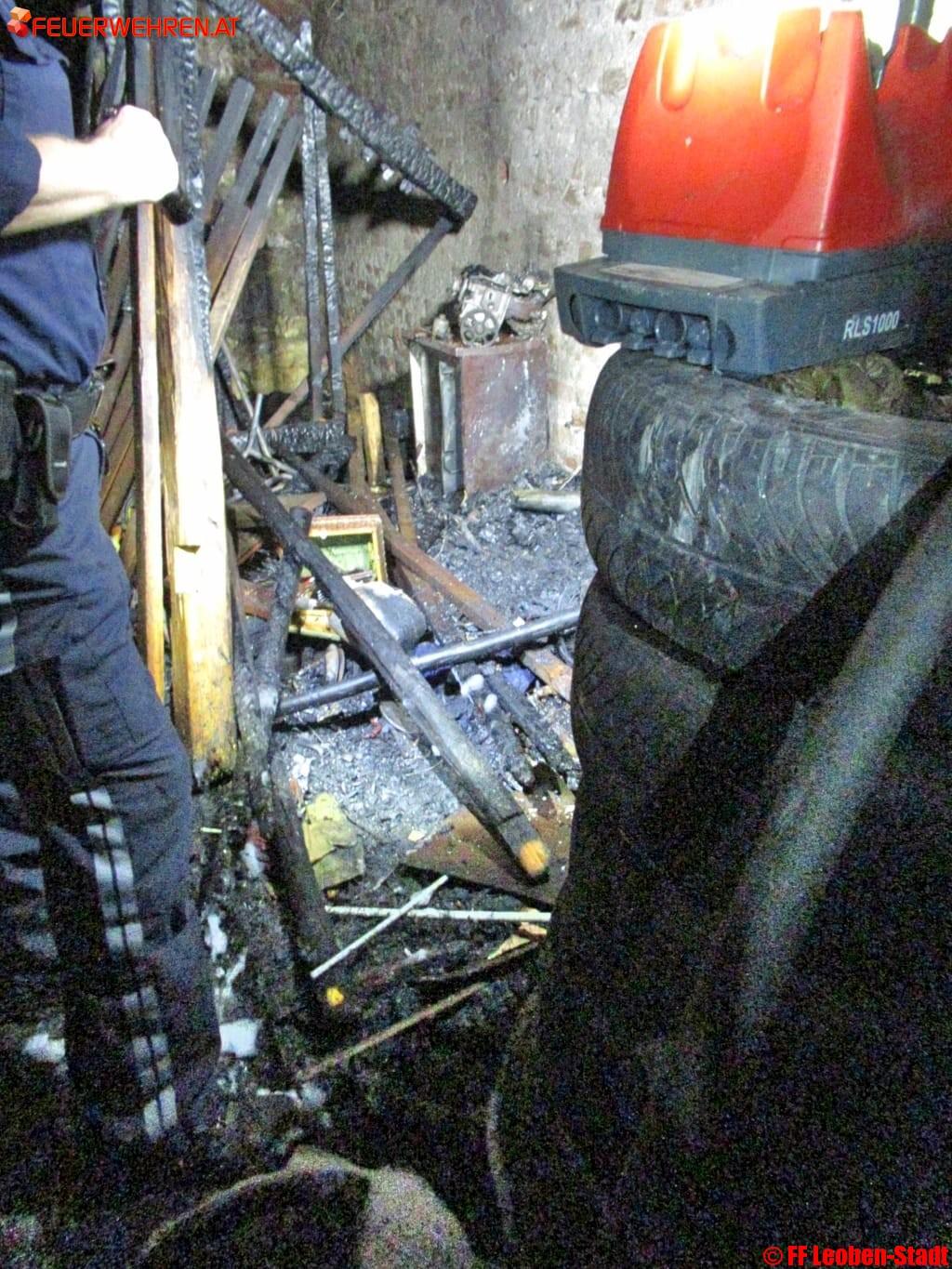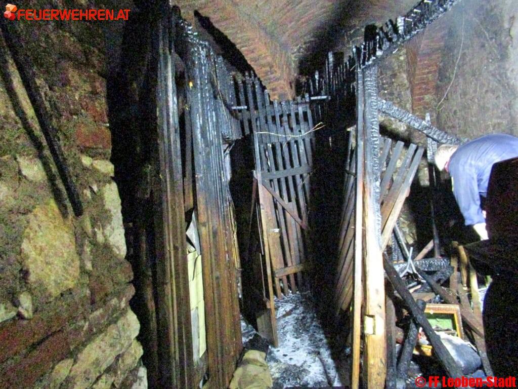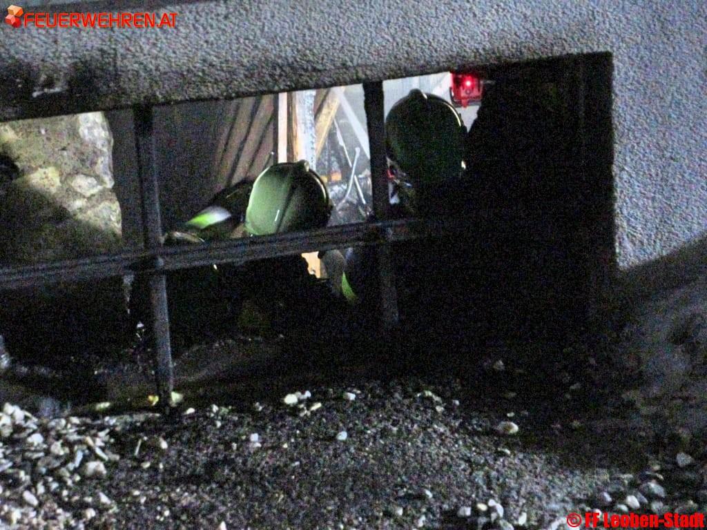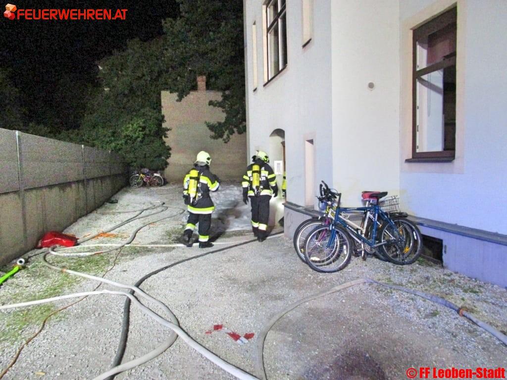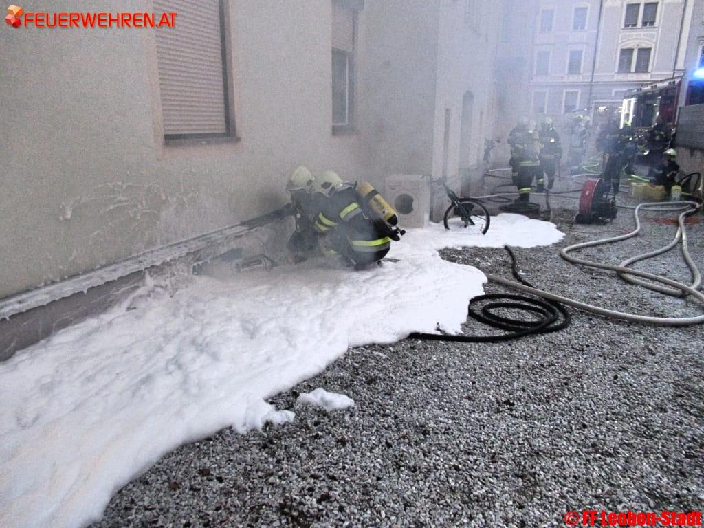 Die nachalarmierte BTF Voestalpine Donawitz richtete mit dem Atemschutzfahrzeug einen Atemschutzsammelplatz ein. Trotz des umfassenden Löschangriffes konnte die Brandintensität nicht gebrochen werden, sodass entschieden wurde, den Keller mit Schaum von außen zu fluten, wobei parallel die Brandbekämpfung im Keller durch Atemschutztrupps unter sehr großer Belastung erfolgte.