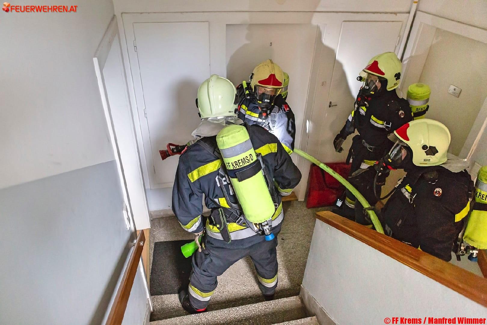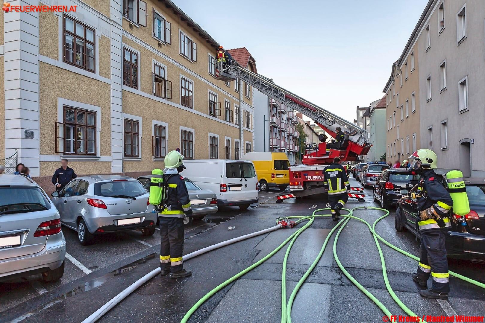 Zunächst alarmierte die Bezirksalarmzentrale Krems die Einsatzkräfte kurz vor 18 Uhr zu einem Zimmerbrand in der Wachaustraße. Die Kräfte der Hauptwache sowie der Feuerwache Egelsee rückten unverzüglich mit mehreren Fahrzeugen zum Einsatzort aus.