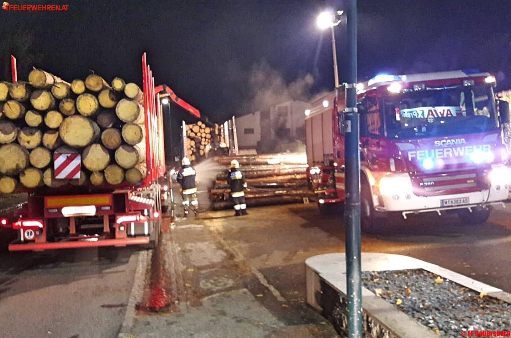 Mittwochfrüh gab es rund um Dobersberg Sirenenalarm. Ein vollbeladener Holztransporter mit Anhänger begann im Ortsgebiet von Dobersberg plötzlich zu brennen. Vier Feuerwehren rückten daraufhin zum Löscheinsatz aus.