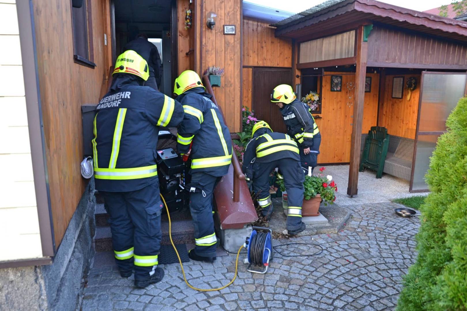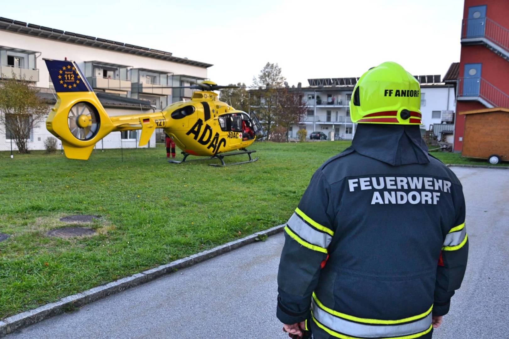 Weiterer Glücksfall für den Mann: Das Einsatzzentrum Andorf, welches Feuerwehr, Rotes Kreuz und Polizei beherbergt, grenzt direkt an das Haus des Verunglückten an, sodass die ersten Einsatzkräfte in wenigen Minuten vor Ort waren. Erstes Aufatmen gab es für diese, nachdem sich der Mann auf Zurufe durch das Fenster durch das Bewegen des Fußes bemerkbar machen konnte. Von Einsatzkräften der Feuerwehr Andorf konnte durch ein gekipptes Fenster schnell ein erster Zugang geschaffen werden und der Verletzte anschließend ins Freie getragen und dem Roten Kreuz übergeben werden. Den Transport ins Krankenhaus erfolgte anschließend mit dem Hubschrauber.