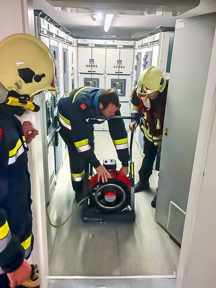 Der Brand war auf einen einzelnen Verteilerschrank beschränkt und wurde rasch unter Kontrolle gebracht. Anschließend musste der Rauch mit insgesamt drei Belüftungsgeräten bis zu einem anderen Raum mit Fensteröffnungen geführt werden.