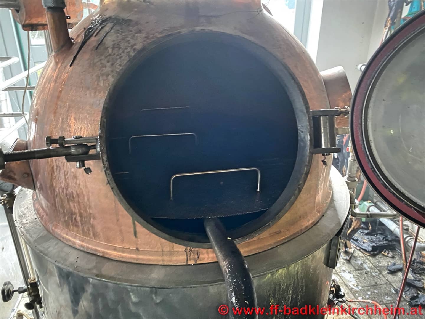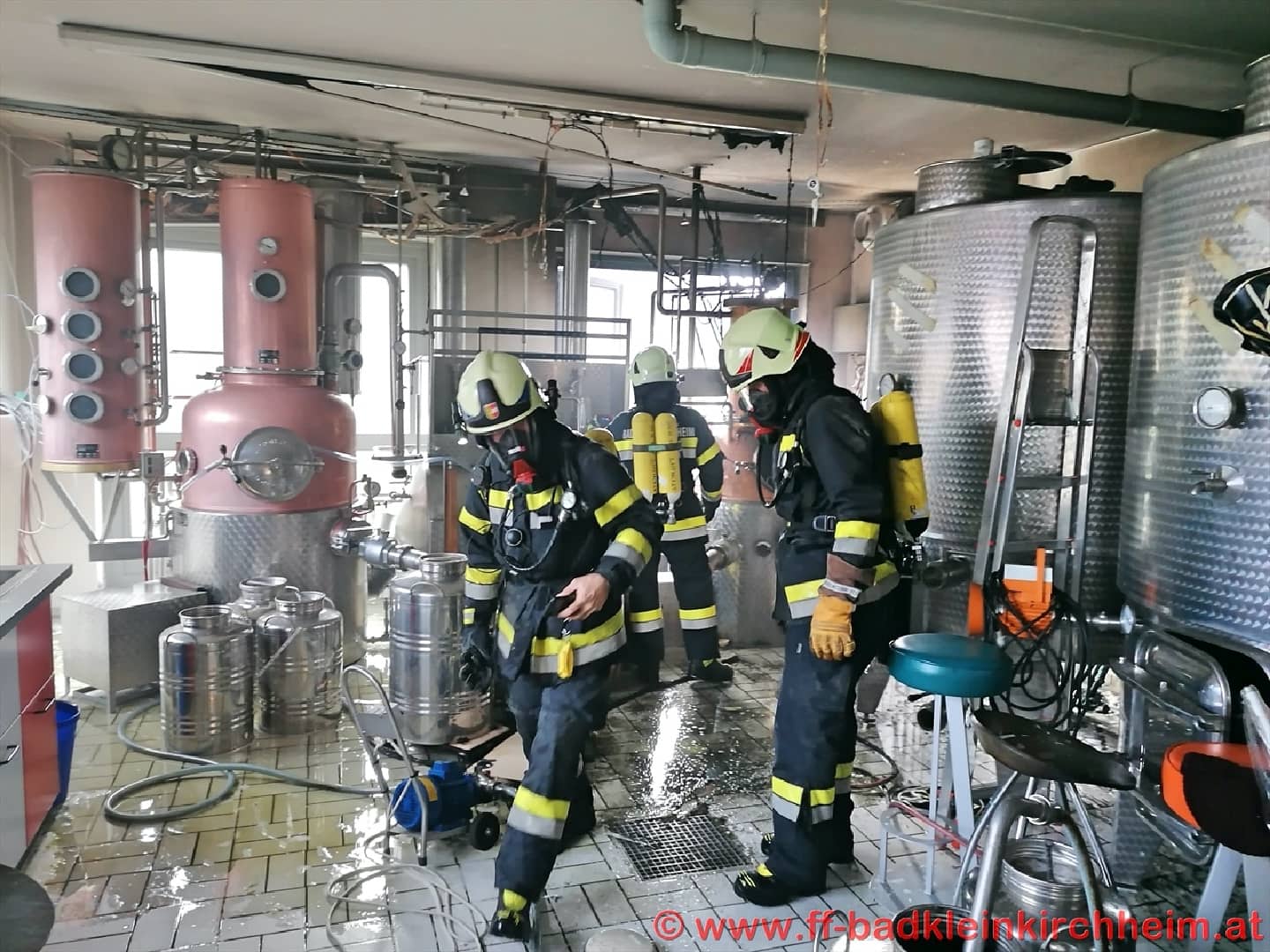Am 25.11.2019 um 12:22 Uhr wurden die Feuerwehren Bad Kleinkirchheim, St. Peter ob Radenthein und Patergassen mit dem Einsatzstichwort „B 4 – Brand mit/nach Explosion“ in eine Destillerie im Ortsteil Untertschern alarmiert. Während eines Befüllvorganges eines Brennkessels kam es aufgrund Temperaturerhöhung im Brennkessel zu einem Überlaufen des Füllgutes. Das übergelaufene Füllgut entzündete sich in der Folge an heißen Teilen des Brennkessels, wodurch es zu einer Verpuffung und zu einem Brand im Brennraum kam.