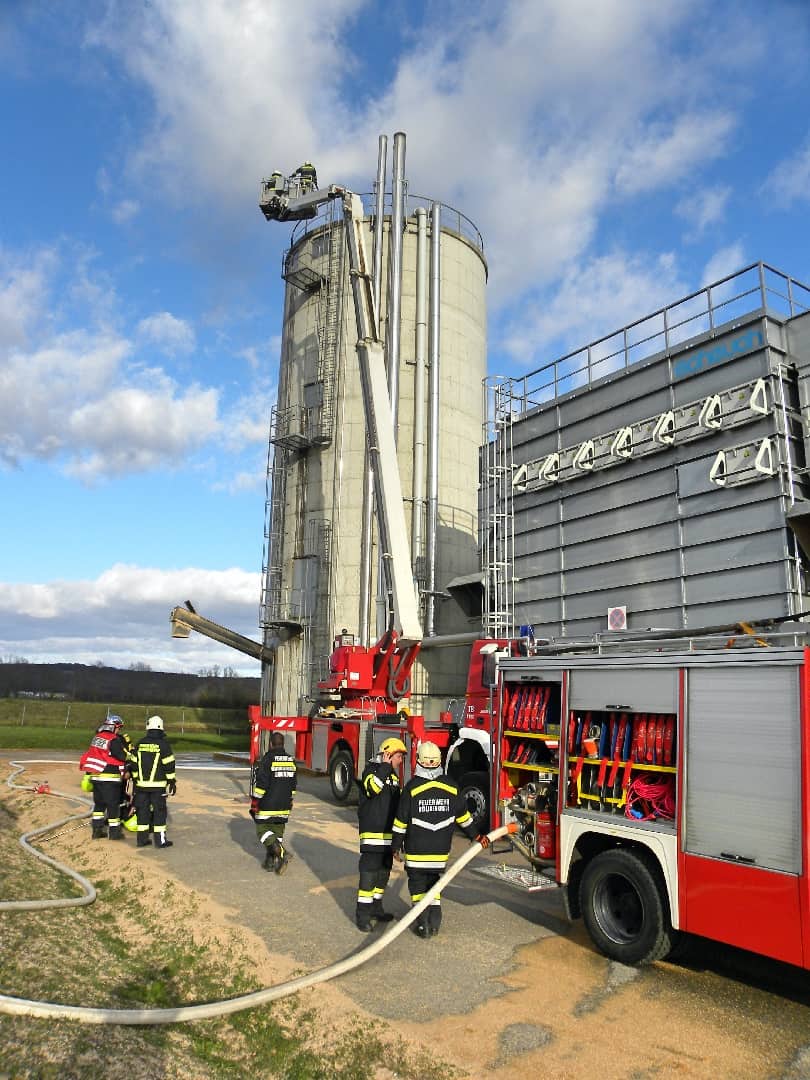 Da es bis zum frühen Abend nicht möglich war eine Firma zu finden, die diesen Auftrag so kurzfristig übernehmen konnte, entschloss sich die Einsatzleitung der Feuerwehr den Silo 2 m hoch über das Silo-Gut mit Mittelschaum zu fluten. Um 16.49 wurde „Brand aus“ gegeben. Mitarbeiter der Firma blieben in der Firma zurück und kontrollieren weiterhin den Silo.