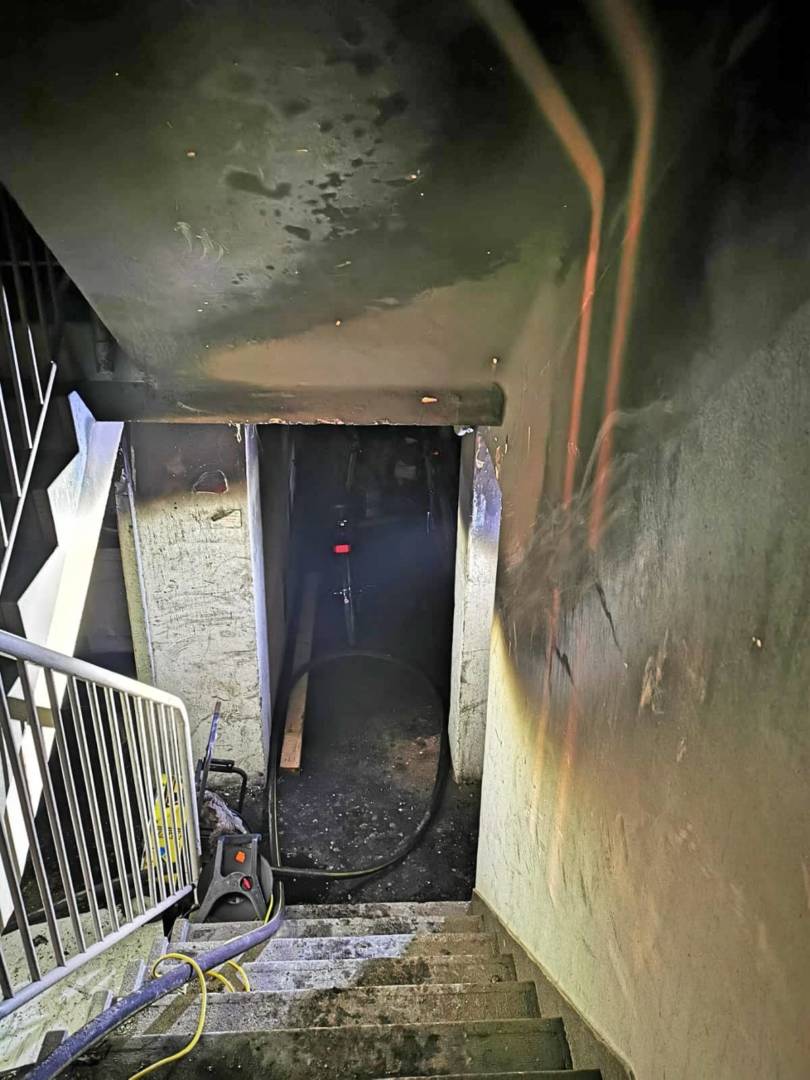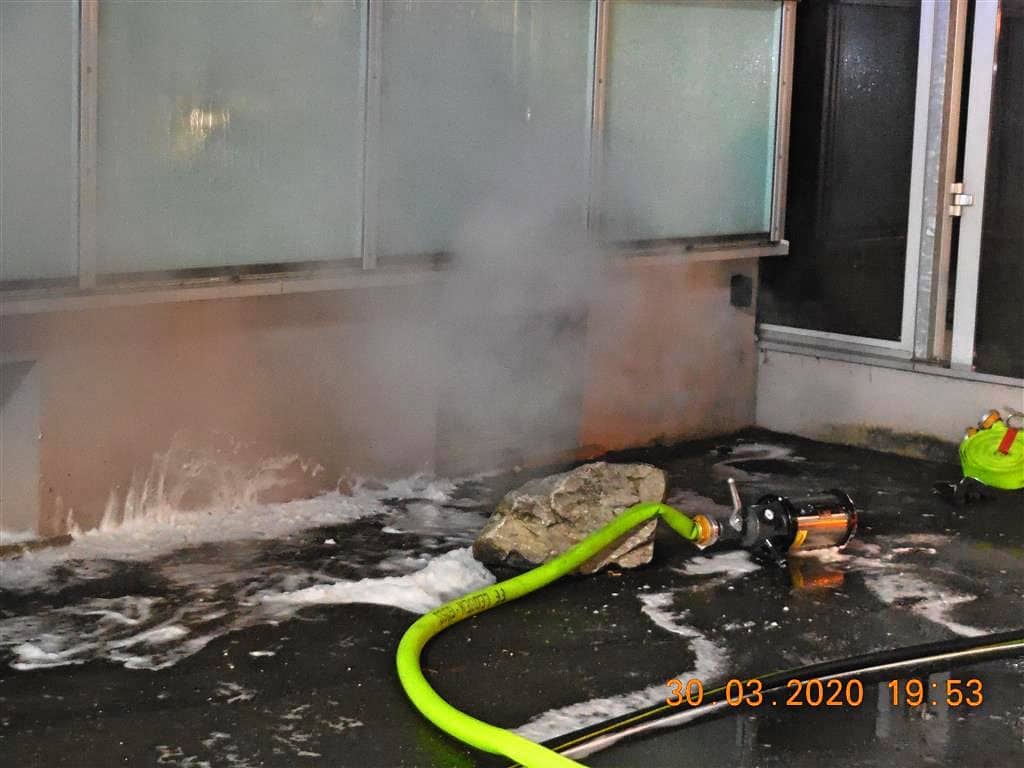 Zur Unterstützung der Brandbekämpfung wurde zusätzlich ein Schaumangriff von außen durchgeführt. Um 21:45 Uhr konnte von der Einsatzleitung „Brand aus“ gegeben werden. Nach den erforderlichen Nachlöscharbeiten, Kontrolle der Brandstelle mittels Wärmebildkamera und Freimessen des Gebäudes rückten die Feuerwehren um 23:35 Uhr wieder in die Feuerwehr ein. Das Gebäude wurde behördlich gesperrt. Sämtliche Bewohner konnten in Ausweichquartieren untergebracht werden.