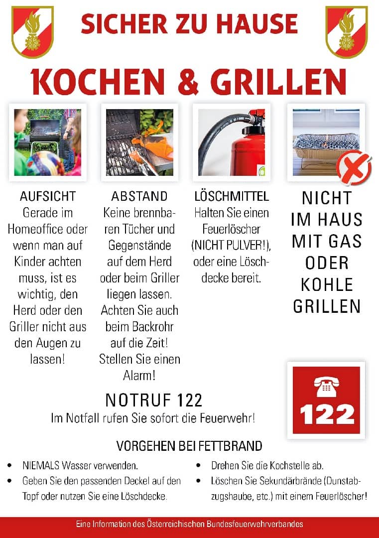 Aufgrund der aktuellen Ausnahmesituation verbringen derzeit viele Menschen nahezu den gesamten Tag, ob beruflich oder privat, im eigenen zu Hause. Hier lauern viele Brandgefahren – vom Homeoffice (Laptop, Ladegeräte etc.) über Heizen (offener Kamin, Gasthermen etc.), Kochen (heißes Fett, Grillen etc.) bis hin zum Rauchen am Balkon (Zigarettenstummel, heiße Asche etc.), nicht zu vernachlässigen offenes Kerzenlicht.