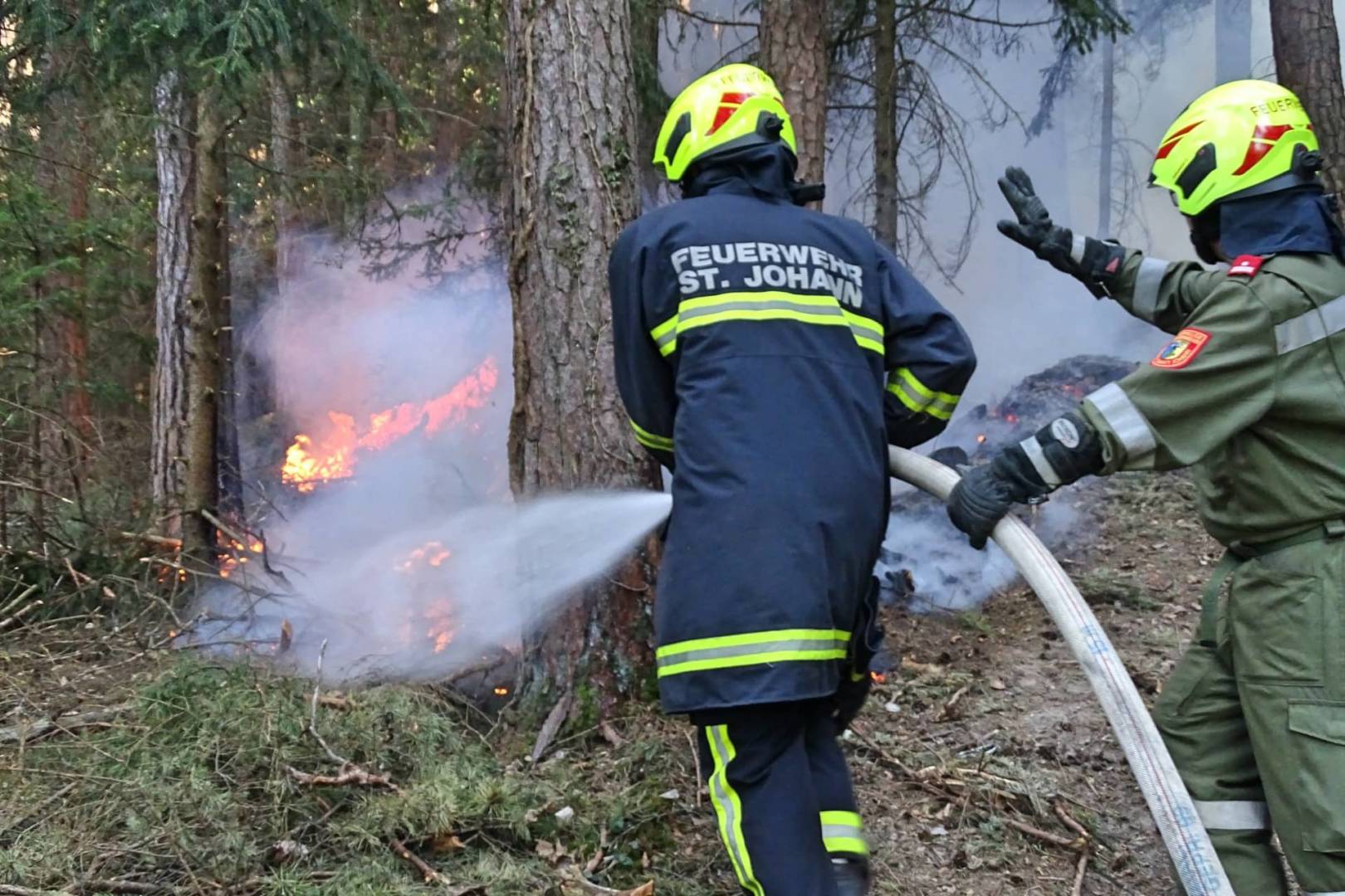 Gegen 17 Uhr wurden am 25. April die Feuerwehren Ternitz-St.Johann, Ternitz-Pottschach und Ternitz-Rohrbach zu einem Waldbrand gerufen. Bei der Anfahrt der alarmierten Feuerwehren konnte von weitem eine starke Rauchentwicklung aus dem Wald wahrgenommen werden. Beim Eintreffen der Feuerwehr wurde eine verletzte Privatperson angetroffen, die versuchte den Waldbrand zu löschen.