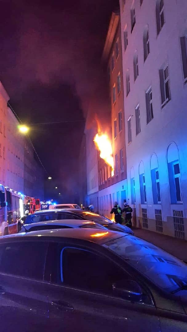 Flammen schlagen aus Fenstern und der durchgebrannten Wohnungstüre, das Stiegenhaus füllt sich mit dichtem Rauch. Mehrere HausbewohnerInnen machen an den Fenstern auf sich aufmerksam. 20 Personen mussten bei dem nächtlichen Brand in Wien – Landstraße von der Feuerwehr gerettet werden.