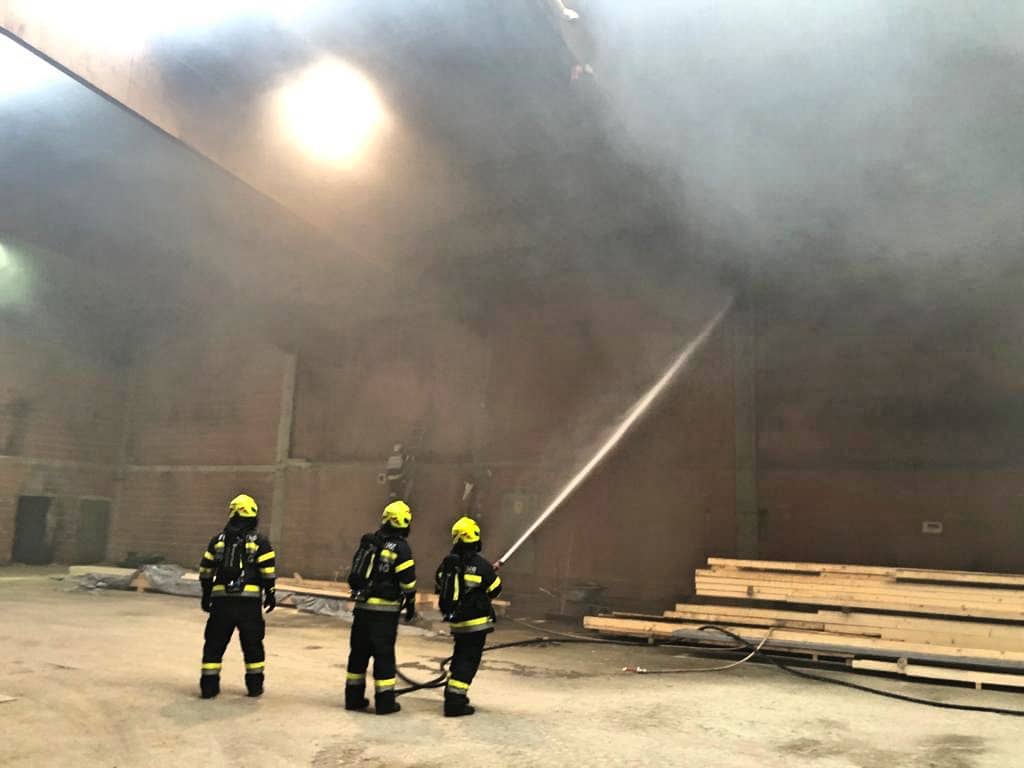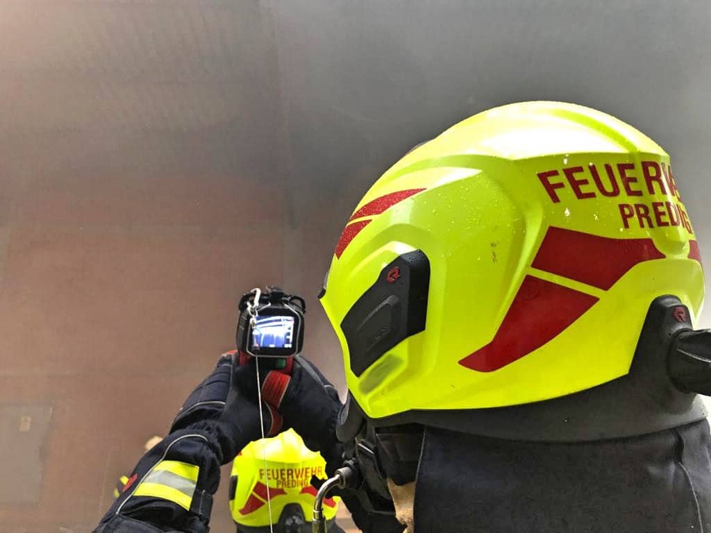 Sofort machten sich die Feuerwehren auf dem Weg. Dort angekommen, machte sich der Einsatzleiter HBI Fritz Sundl (FF Preding) ein Bild von der Lage. Es war zu einem Brand im Bereich der Schleiferei gekommen. Wand und Deckenkonstruktion waren betroffen.