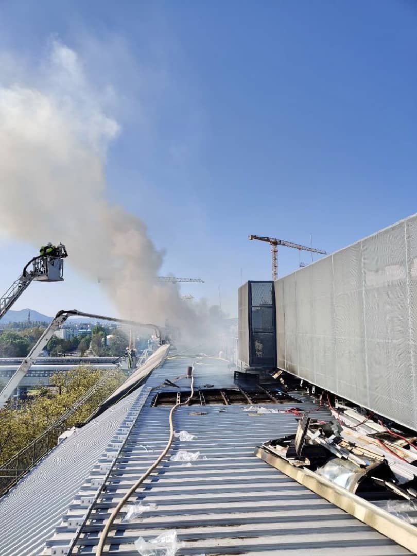 Im Baustellenbereich des Donauzentrums an der Wagramer Straße war heute, am späten Mittag, im Dachbereich ein Brand ausgebrochen, aus bislang ungeklärter Ursache. Die Berufsfeuerwehr stufte die Situation im Laufe des Einsatzes auf eine „Alarmstufe 4“ hoch – was bedeutet, das zwischenzeitlich 160 Einsatzkräfte mit 40 Fahrzeugen gleichzeitig daran waren, den Dachbrand zu löschen.