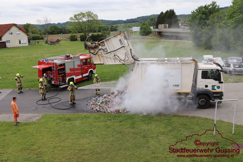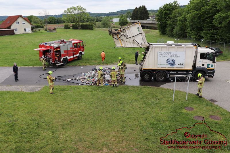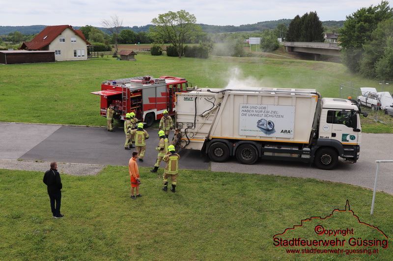 Am Dienstag, dem 05.05.2020, wurden wir um 10:26 Uhr zu einem LKW-Brand in die Bahnhofstraße gerufen – Adresse Feuerwehrhaus – Der Fahrer eines Müllwagens bemerkte, dass dessen Ladung sich entzündet hatte. Daraufhin fuhr er direkt zum Feuerwehrhaus und alarmierte die Feuerwehr.