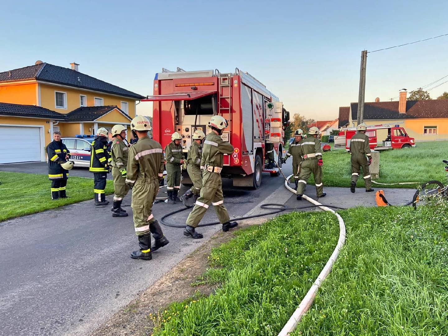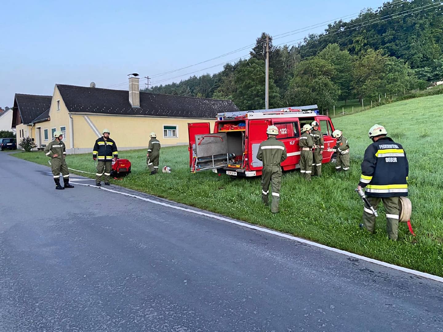 Insgesamt waren 4 Feuerwehren mit 35 Mann, ein Rotkreuzfahrzeug mit 2 Sanitätern und eine Polizeistreife im Einsatz.