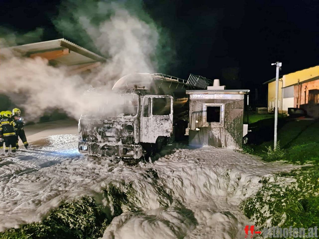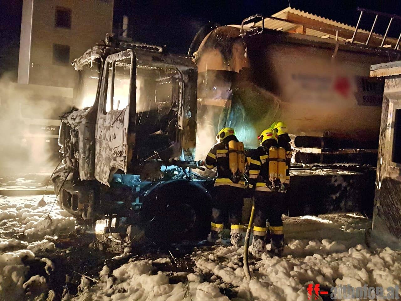 Althofens Feuerwehrkommandant und Einsatzleiter Johann Delsnig konnte nach zwei Stunde, um 01.43 Uhr, „Brand aus“ geben. Insgesamt standen 43 FF-Mitglieder mit 7 Fahrzeugen im Einsatz, verletzt wurde niemand. Die Zugmaschine wurde ein Raub der Flammen, der Sachschaden ist enorm. Die Brandursache ist Gegenstand der polizeilichen Ermittlungen.