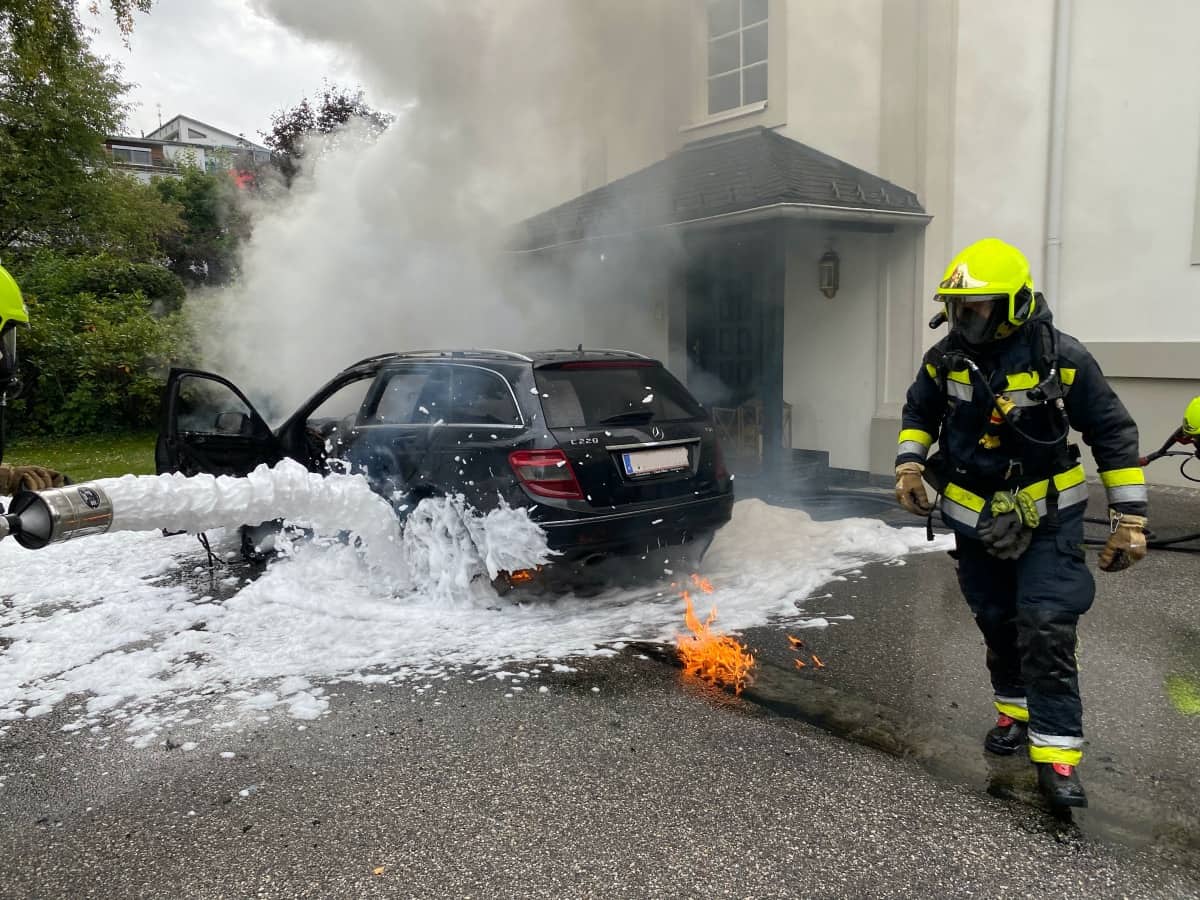 Kurz vor 11 Uhr vormittags meldete ein Fahrzeuglenker, dass sein PKW in einem Innenhof eines Wohnhauses in der Villacher Innenstadt zu brennen begonnen hatte. Aus noch nicht geklärter Ursache fing das Fahrzeug nach dem Abstellen Feuer. Der Besitzer und sein Hund konnten das Auto noch rechtzeitig und unversehrt verlassen.