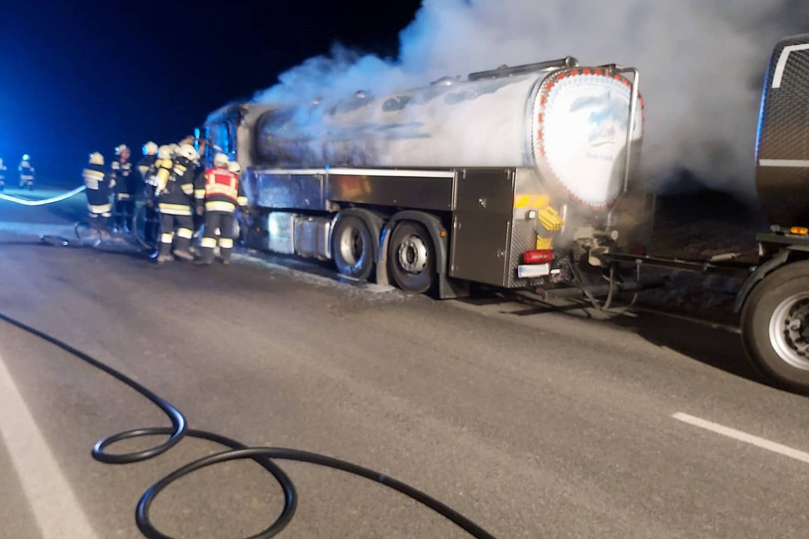 Der 57-jährige Fahrer war mit einem Milchtransporter samt Anhänger auf der B5 von Waidhofen kommend Richtung Weinpolz unterwegs. Kurz vor Lichtenberg bemerkte er Brandgeruch und wenig später schlugen bereits Flammen aus dem Motorraum. Der Mann konnte den LKW unverletzt verlassen und verständigte die Feuerwehr.