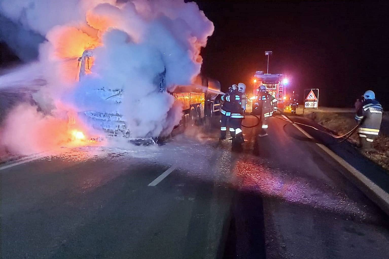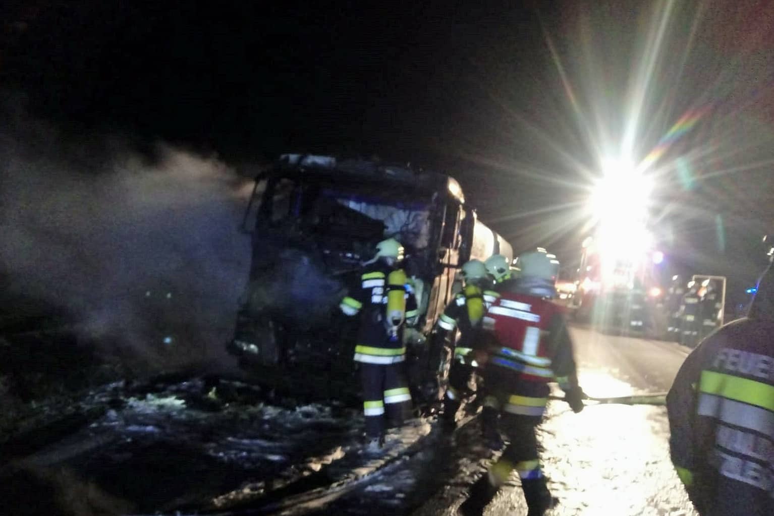 Mittwochabend ging auf der B5 bei Lichtenberg (Gemeinde Windigsteig, Bez. Waidhofen an der Thaya) ein Milchtransporter in Flammen auf. Der LKW Lenker konnte sich selbst in Sicherheit bringen. Fünf Feuerwehren standen bei der Brandbekämpfung im Einsatz.
