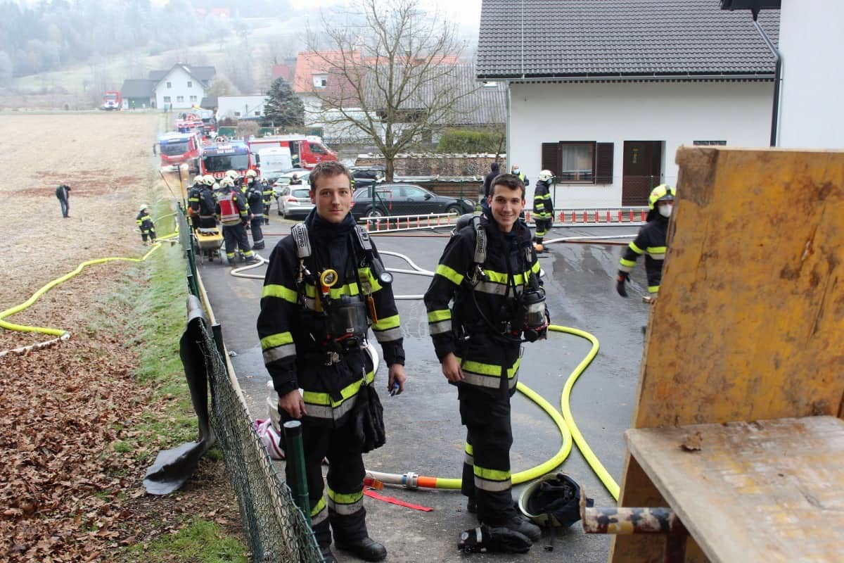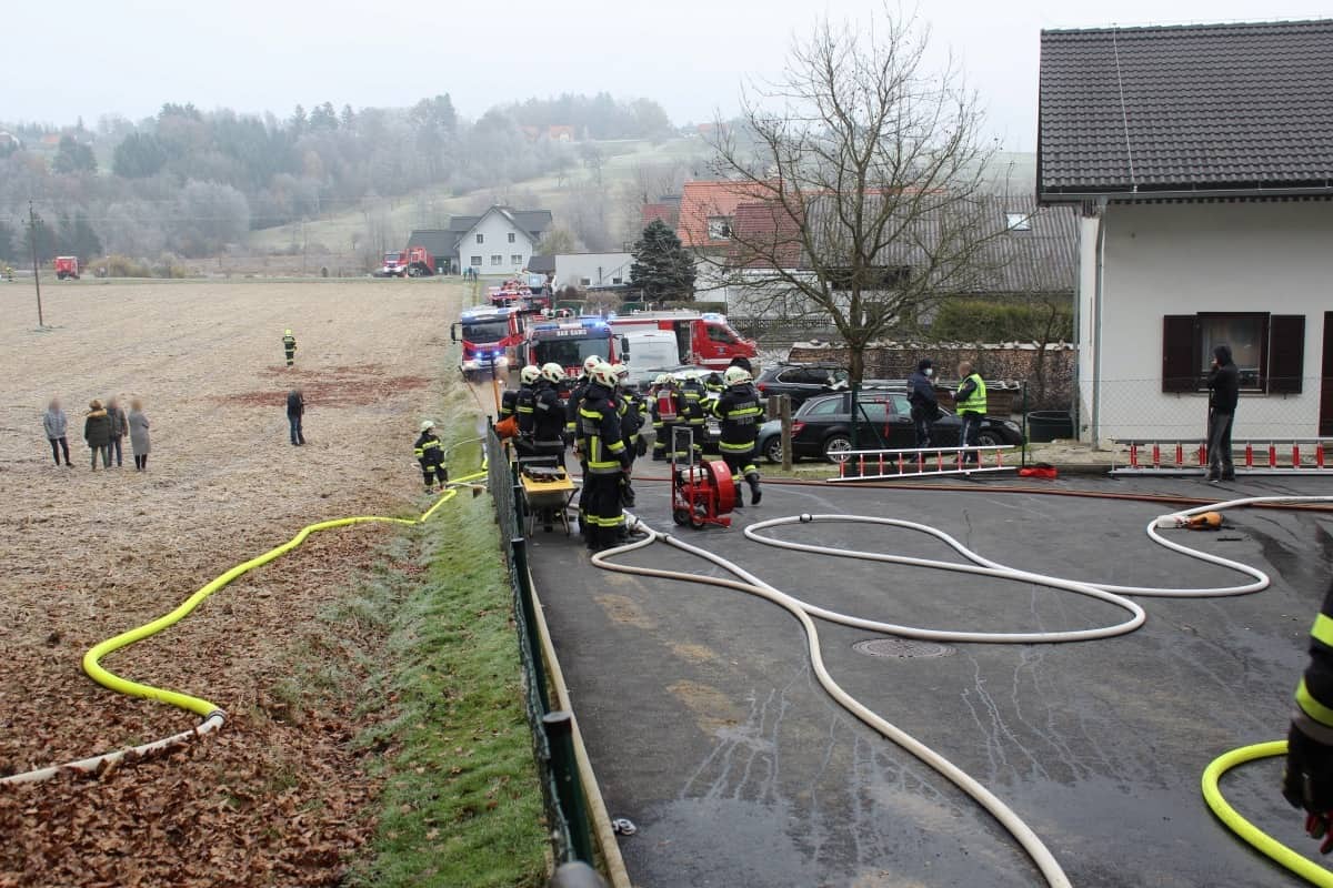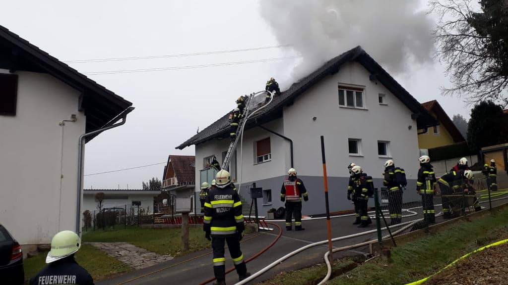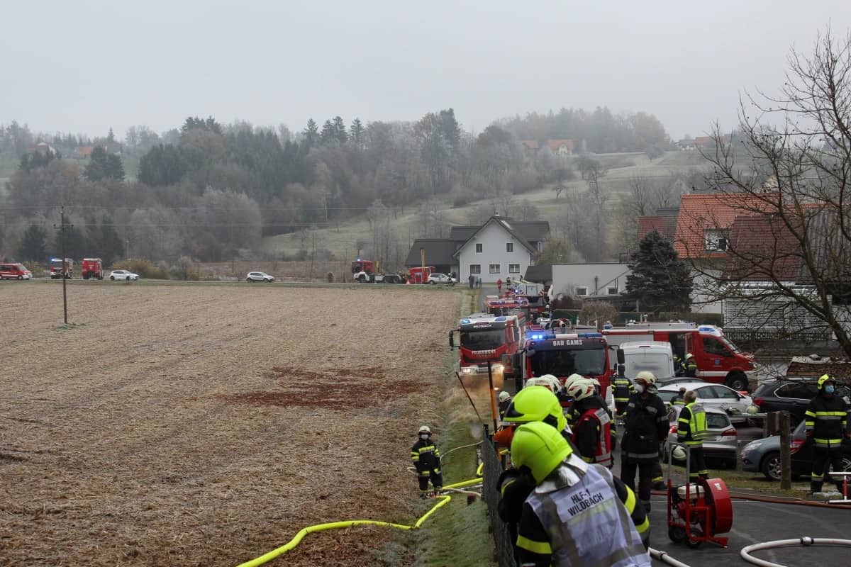 Zunächst ging man noch von einer im Gebäude vermissten Person aus, was sich nach dem Eintreffen der ersten Einsatzkräfte glücklicherweise nicht bestätigte. Man begann unverzüglich mit einem Innenangriff unter schwerem Atemschutz sowie mit einem umfassenden Angriff von außen. Rasch nach Einsatzbeginn wurden bereits die Freiwilligen Feuerwehren Wildbach und Deutschlandsberg sowie wenig später die Feuerwehren aus Freidorf und Frauental nachalarmiert und das Einsatzstichwort aufgrund des Brandausmaßes auf „B12 – Wohnhausbrand“ erhöht.