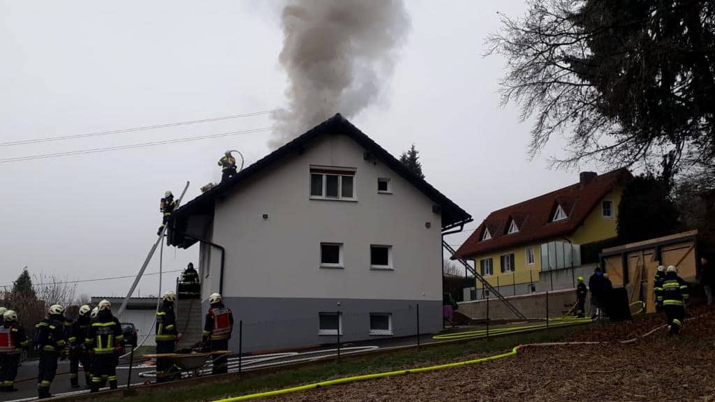 Ebenfalls wurde das Atemschutzfahrzeug von der Betriebsfeuerwehr Magna Lannach beordert. Des Weiteren musste das Dach abgedeckt werden um in den Deckenzwischenraum zu gelangen. Die Brandursache ist zurzeit noch Gegenstand bzw. Ermittlungen der Polizei! Glücklicherweise wurde beim Einsatz niemand verletzt! Da das Wohnhaus zurzeit nicht bewohnbar ist, erklärten sich Nachbarn und Freunde bereit, die Familie bei sich aufzunehmen.