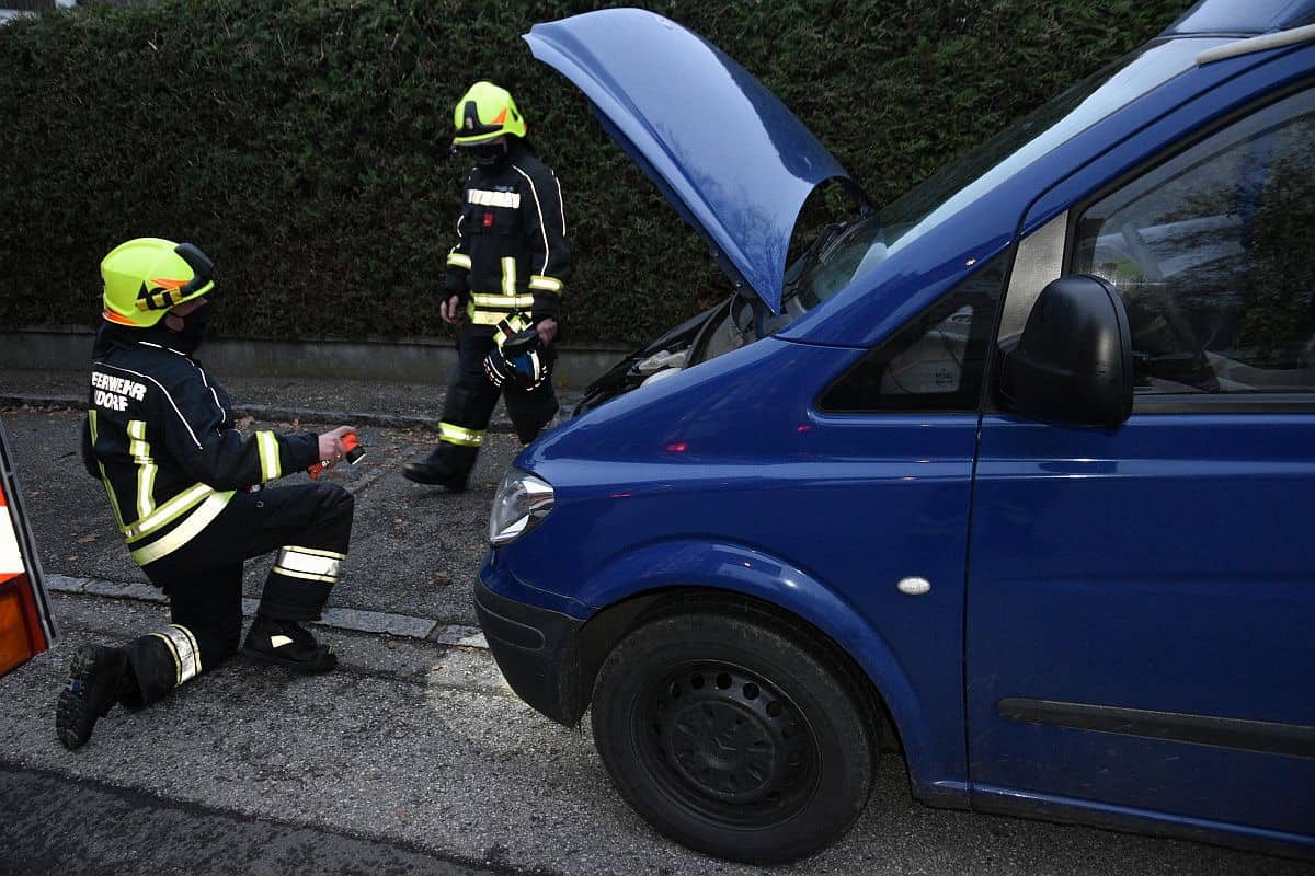 Mit dem Alarmierungsgrund „PKW-Brand“ wurden am späten Nachmittag des 10. November 2020 die Feuerwehren Andorf und Pimpfing in die Hans-Holz-Straße in der Nähe der Volksschule Andorf gerufen. Der Lenker eines Lieferwagens bemerkte während der Fahrt Rauchentwicklung aus dem Motorraum und brachte daraufhin das Fahrzeug auf dem Parkplatz vor der Schule zum Stillstand.