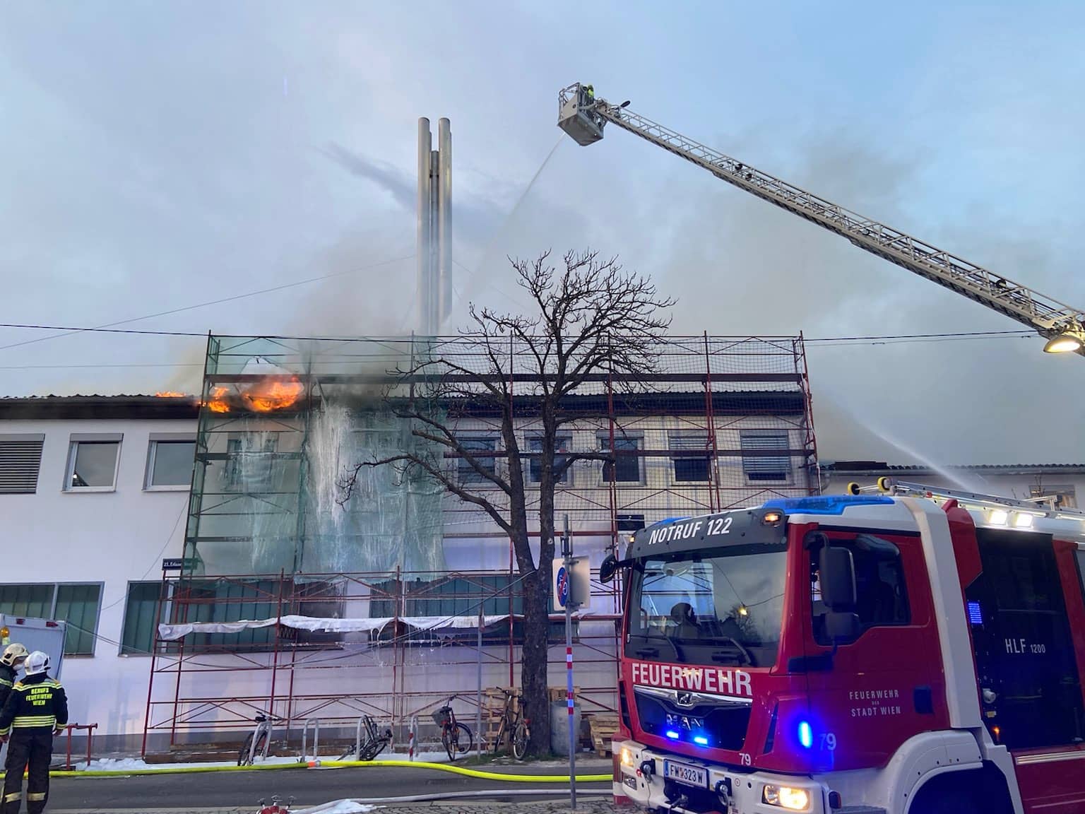 Nach fast 4 Stunden im Großeinsatz meldete die Berufsfeuerwehr Wien nun „Brand aus“. Mit Ausnahme weniger Glutnester konnte das Feuer im Firmengebäude in der Erlaaer Straße also gelöscht werden. Insgesamt waren seit 17.15 Uhr über 100 Einsatzkräfte bei der Brandbekämpfung eingesetzt.