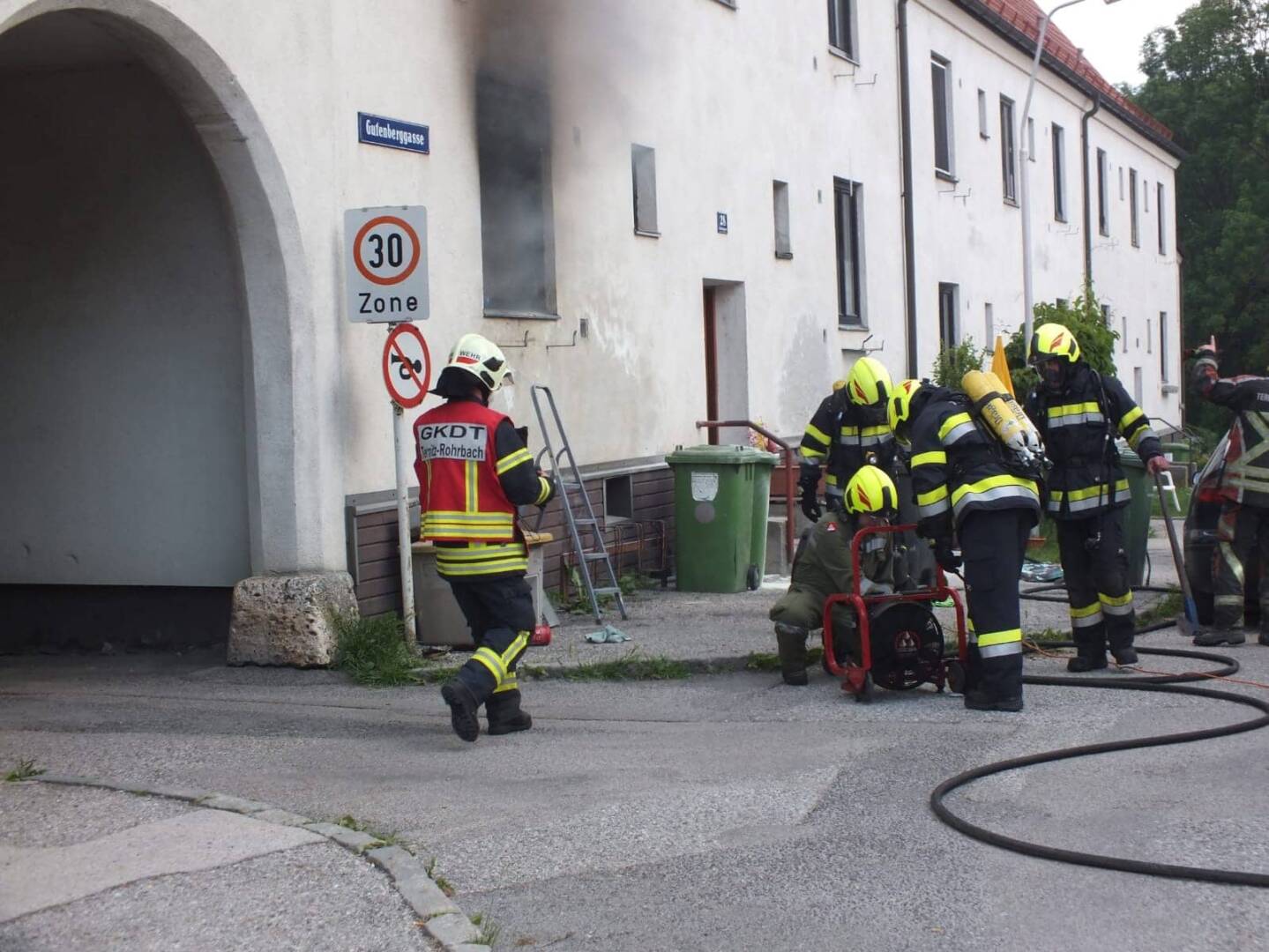 Am 3.Juni heulten die Sirenen in Ternitz. In der Gutenberggasse in Pottschach kam es aus noch unbekannter Ursache zu einem Wohnungsbrand mit einer eingeschlossenen Person. Beim Eintreffen der Feuerwehr schlugen die Flammen bereits aus dem Fenster des Erdgeschosses.