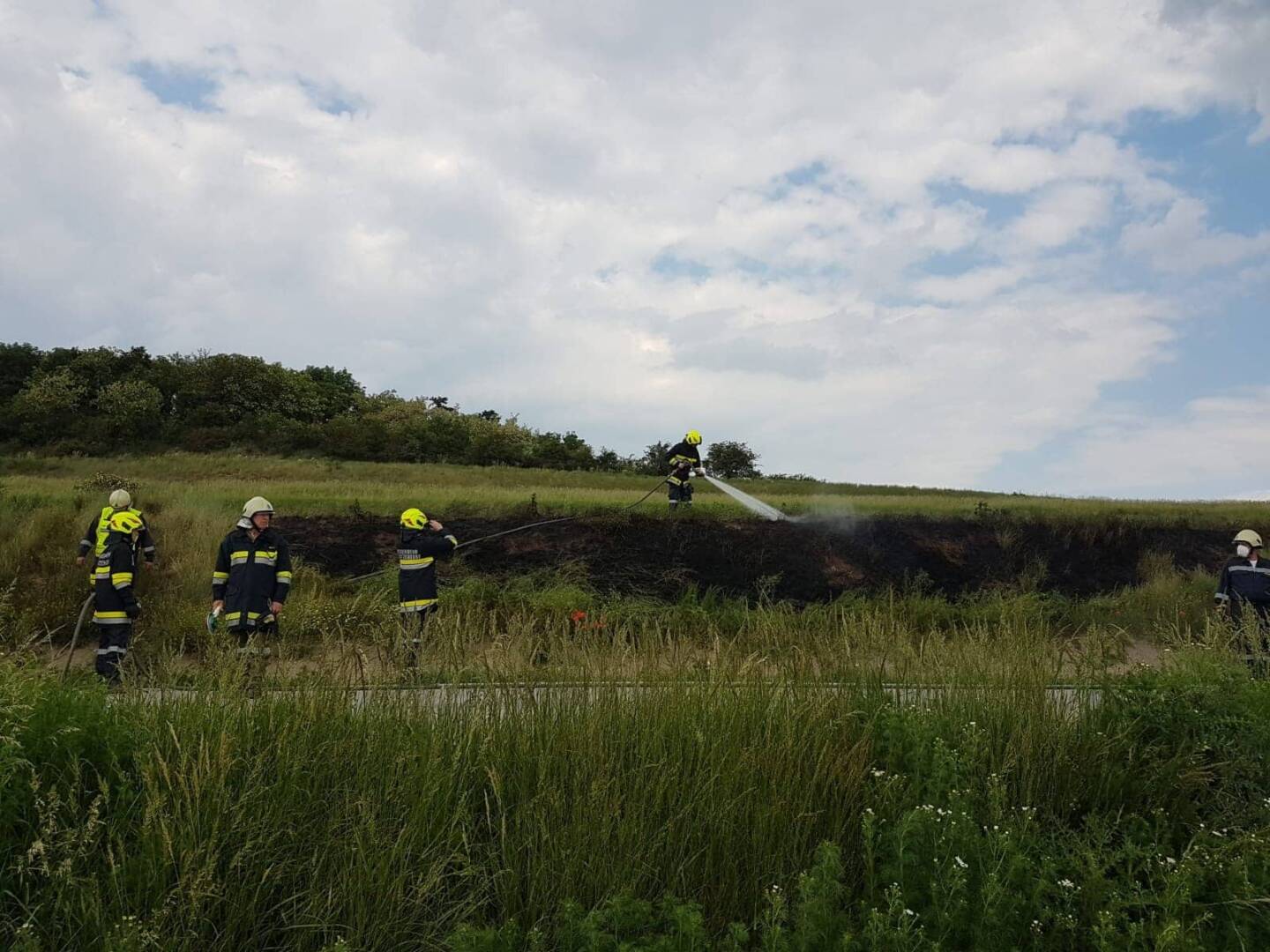 Beim Eintreffen der Einsatzkräfte mit dem Hilfeleistungsfahrzeug und dem Rüstlöschfahrzeug war der Brand bereits von selbst erloschen. Aufgabe war es, die abgebrannte Böschung mit Wasser zu benetzen, um ein Aufflammen zu verhindern. Nach kurzer Zeit konnte man wieder ins Feuerwehrhaus einrücken.
