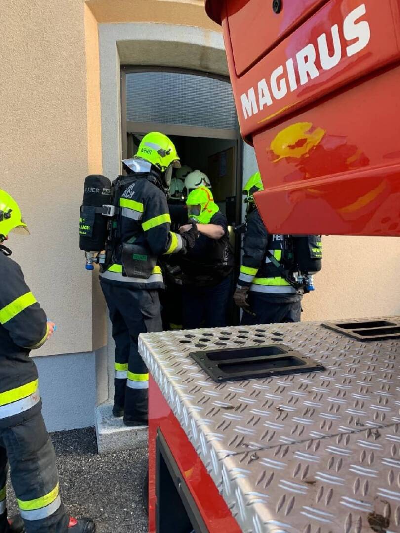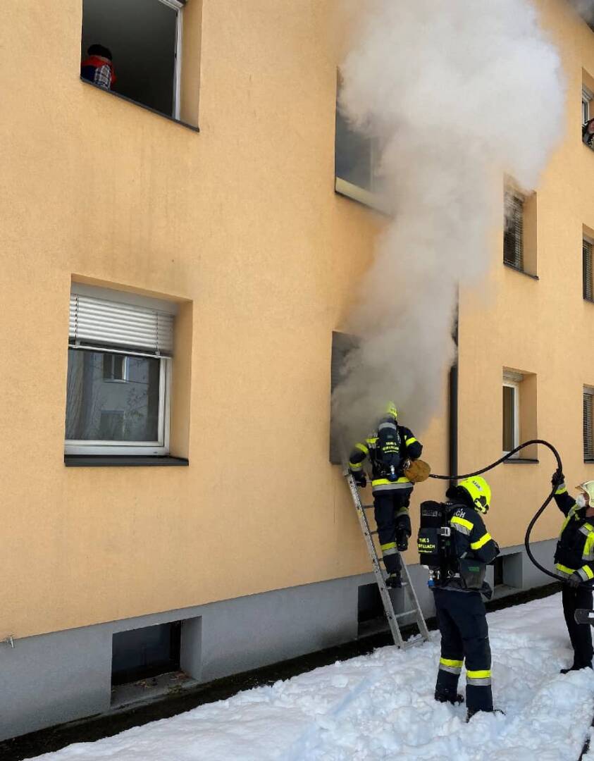 Auf der Rückseite des Wohnblocks stieg ein weiterer Atemschutztrupp ebenfalls in die brennende Wohnung mit einer Löschleitung zur Unterstützung ein. Zeitgleich wurden mehrere Mieter, welche sich an den Fenstern bemerkbar machten, aber durch das verrauchte Stiegenhaus nicht mehr flüchten konnten, über eine tragbare Leiter aus ihren Wohnungen im ersten und zweiten Stock gerettet, so Geissler weiter.
