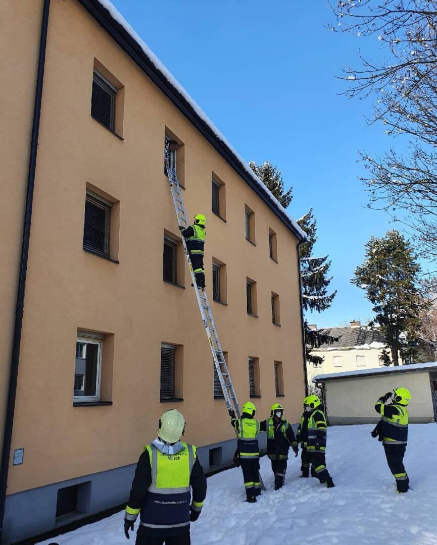 Sofort wurden durch die Feuerwehrleitstelle Villach gemäß Alarmplan die Hauptfeuerwache Villach und die FF Perau alarmiert. Als die ersten Kräfte unserer Wache am Einsatzort eintrafen, quoll bereits Rauch aus den Fenstern im Erdgeschoss und aus dem Stiegenhaus. Hilfeschreie konnten von uns wahrgenommen werden, so Einsatzleiter HBI Harald Geissler Kommandant der Hauptfeuerwache. Unverzüglich wurden zwei Atemschutztrupps mittels Löschleitung und Wärmebildkamera zur Menschenrettung und Brandbekämpfung in die betroffene Wohnung geschickt.