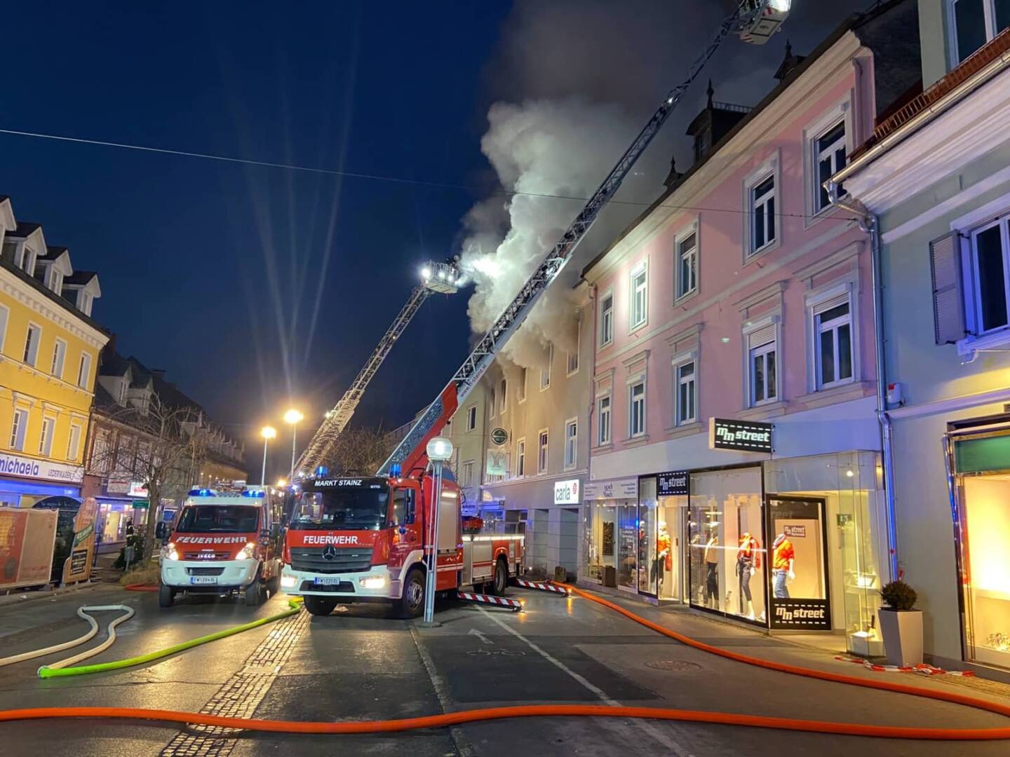 Am Sonntagnachmittag, den 16.01.2022, kam es zu einem Wohnhausbrand am Hauptplatz in Deutschlandsberg. Mehrere Feuerwehren waren mit unzähligen Atemschutztrupps im Einsatz. Verletzt wurde glücklicherweise niemand.