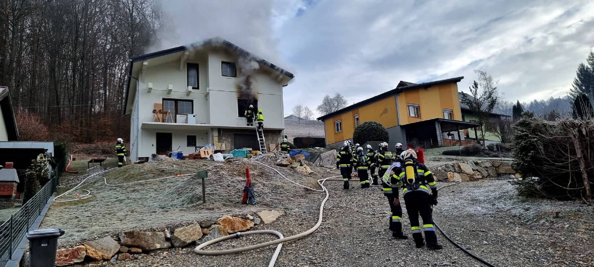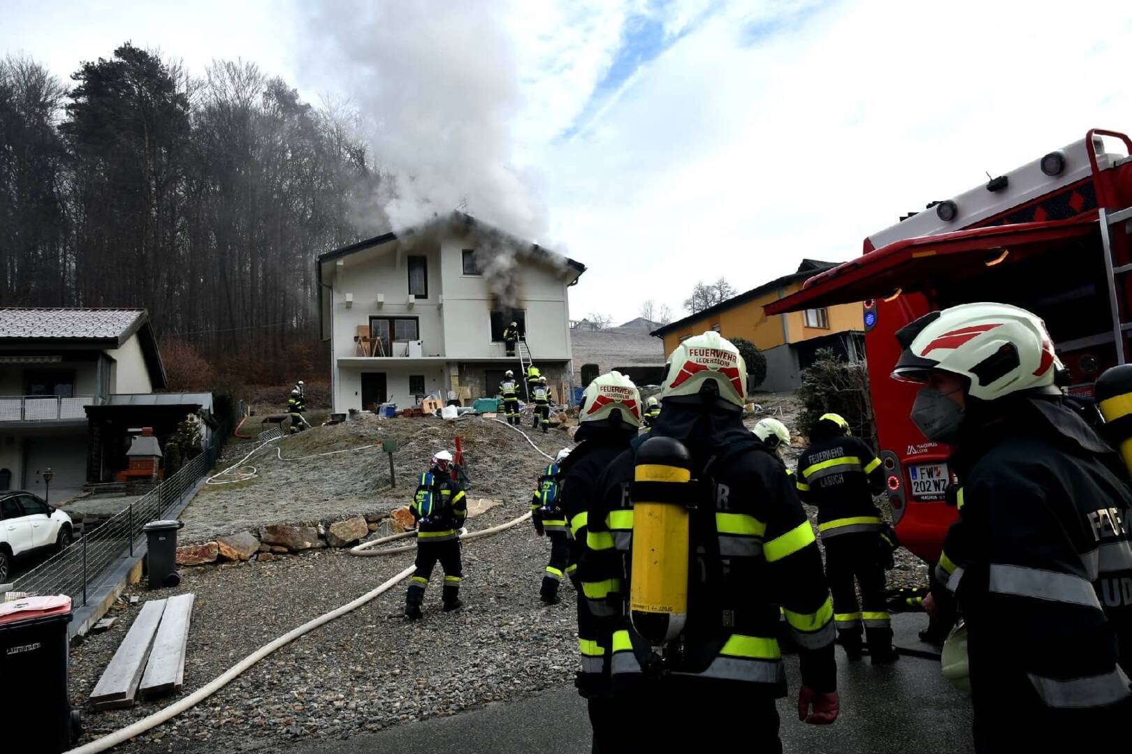 Die Feuerwehren Labuch, Ludersdorf und Gleisdorf standen heute bei einem Wohnhausbrand in Urscha im Einsatz.