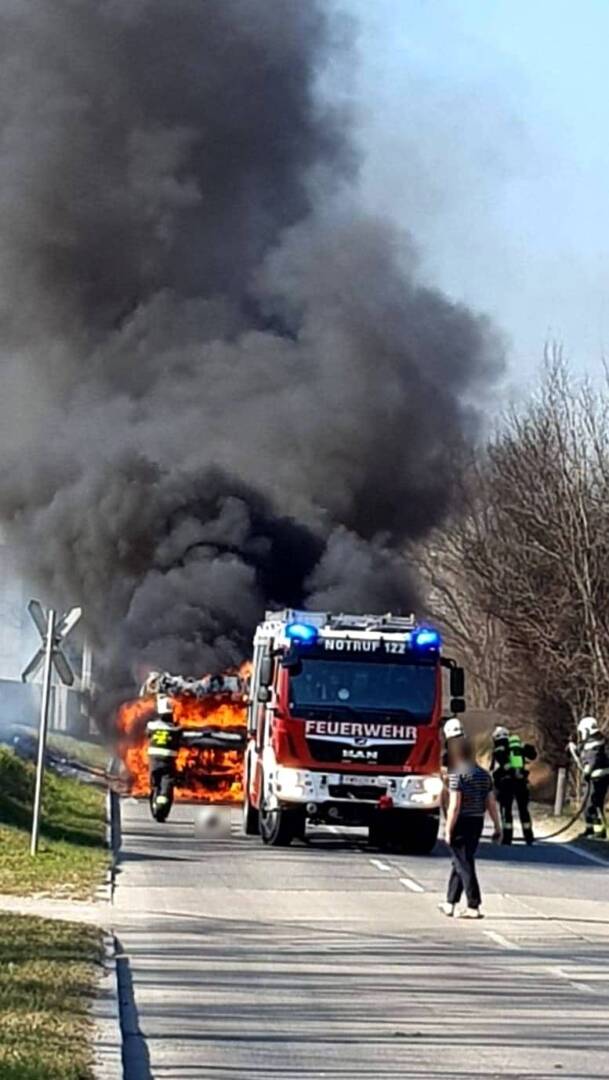In der Alberner Hafenzufahrtsstraße in Wien – Simmering gerät ein Pritschenwagen in Brand. Der Lenker kann sich aus eigener Kraft retten, der Brand wird unter Atemschutz gelöscht.