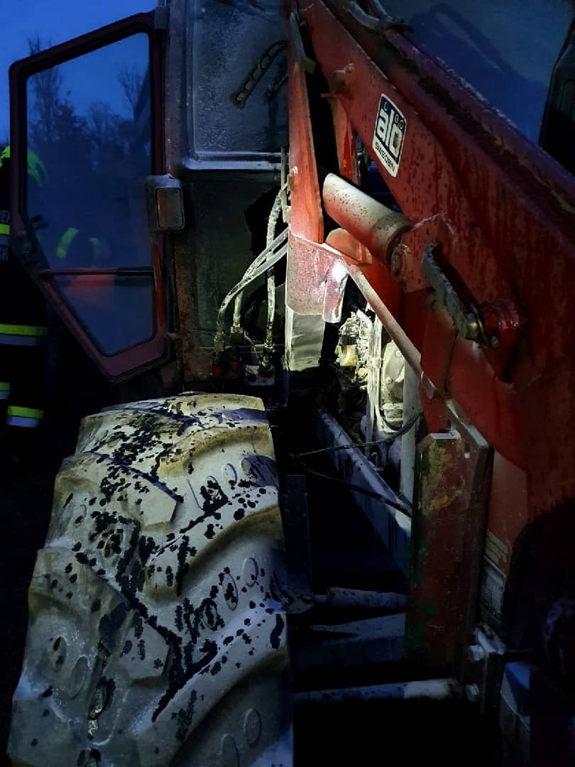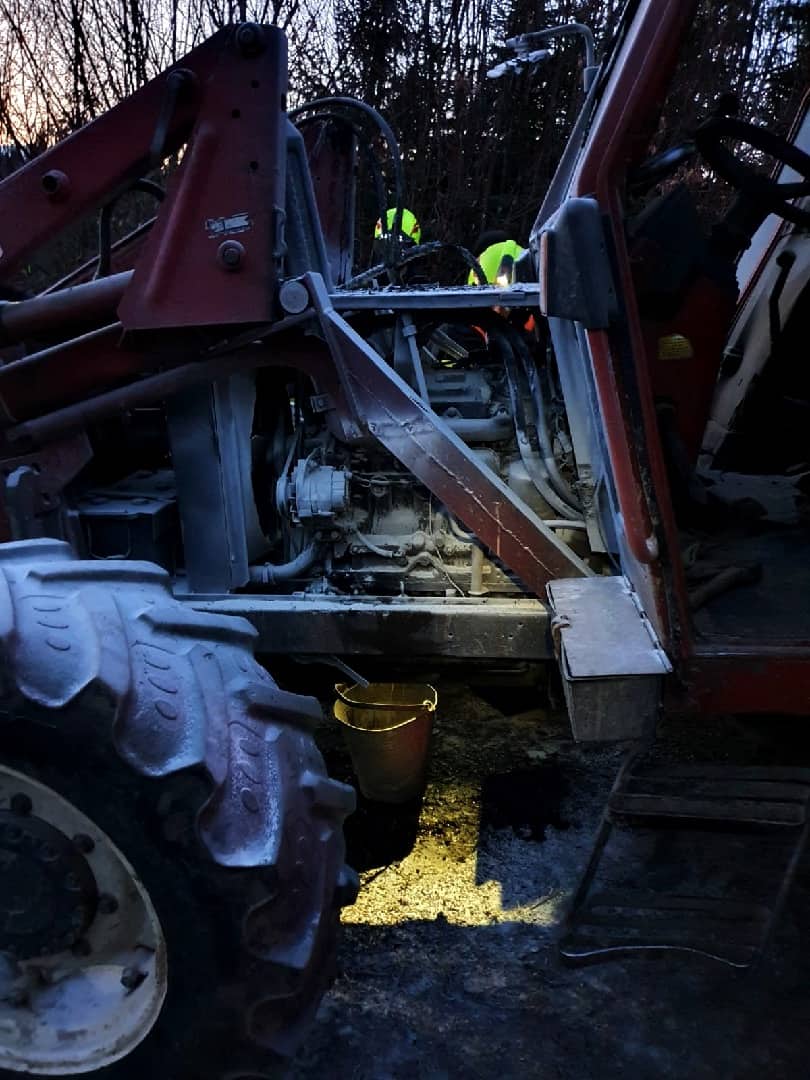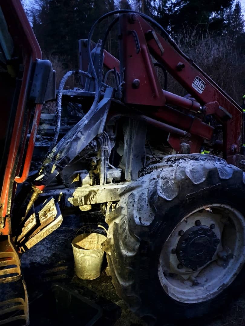 Als die Feuerwehrkameraden am Einsatzort eintrafen übernahmen diese die Nachlöscharbeiten. Anschließend wurde auslaufendes Öl gebunden sowie das verschmutzte Erdreich abgetragen und entsorgt. Danach wurde der Schlepper mit Anhänger, der mit Holz beladen war, vom Einsatzort geborgen und sicher abgestellt.