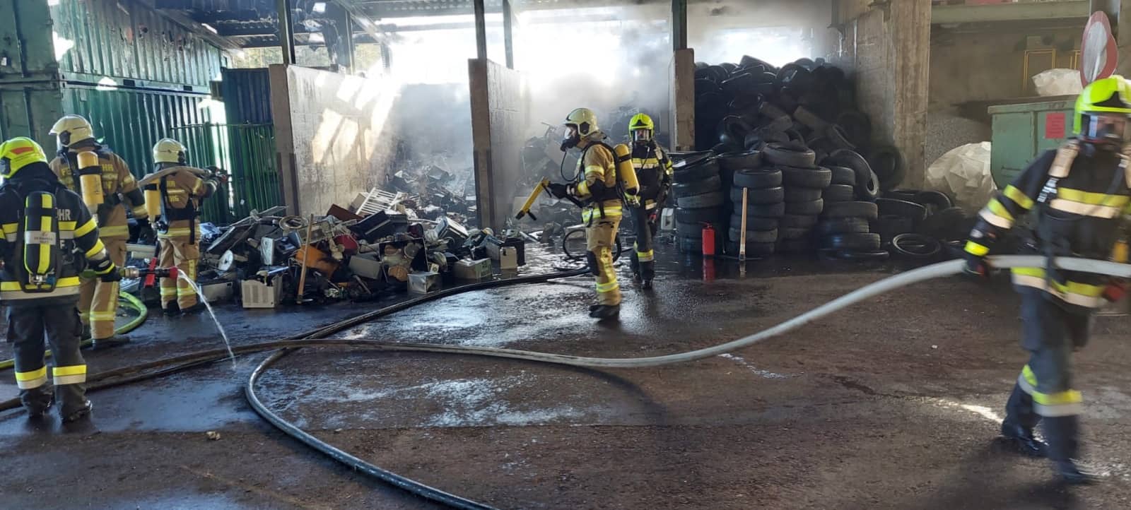 Heute Nachmittag um 14:50 Uhr alarmierte die Bezirksfeuerwehrzentrale die Feuerwehren Aich, Assach, Haus im Ennstal zu einem Industriebrand. In der Abfallverwertungsanlage Aich steht in einer Halle der Inhalt zweier Elektroschrott-Großbehälter in Vollbrand.