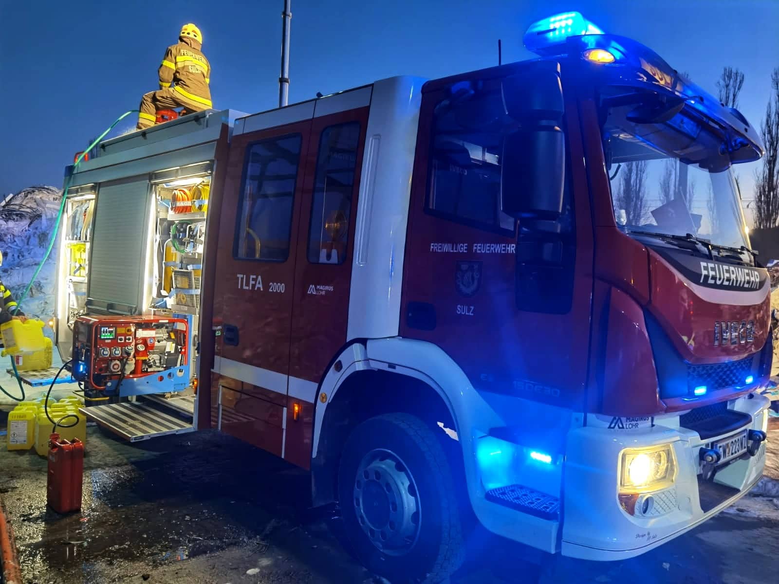 Der Brand konnte mittels Schaum und schweren Atemschutz rasch unter Kontrolle gebracht werden, die Löscharbeiten dauern derzeit noch an. Neben den Feuerwehren des Feuerwehrabschnittes 07 St. Margarethen an der Raab (FF Goggitsch, FF Hofstätten an der Raab, FF St. Margarethen an der Raab, Sulz, FF Takern II) waren noch vier weitere Feuerwehren (FF Gleisdorf, FF Labuch, FF Pöllau bei Gleisdorf und FF Weiz) sowie das Rotes Kreuz Gleisdorf und Polizei St. Margarethen an der Raab, der Bereichsfeuerwehrkommandant Oberbrandrat Johann Maier-Paar mit insgesamt 21 Fahrzeugen und 96 Einsatzkräften im Einsatz.