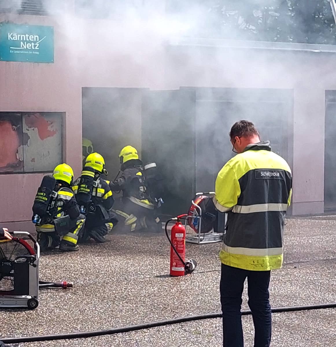 In einem Gebäude, in welchem sich ein Hochspannungstrafo der KELAG NETZ befindet, kam es aus noch unbekannte Ursache zu einem Brand mit daraus resultierender starker Rauchentwicklung, berichtet Einsatzleiter Harald Geissler, Kommandant der Hauptfeuerwache Villach. Sofort wurde eine Löschleitung zum Niederschlagen des giftigen Brandrauches unter schwerem Atemschutz vorgenommen. Seitens der Feuerwehrleitstelle Villach wurde unverzüglich der Störungsdienst der Kelag verständigt.