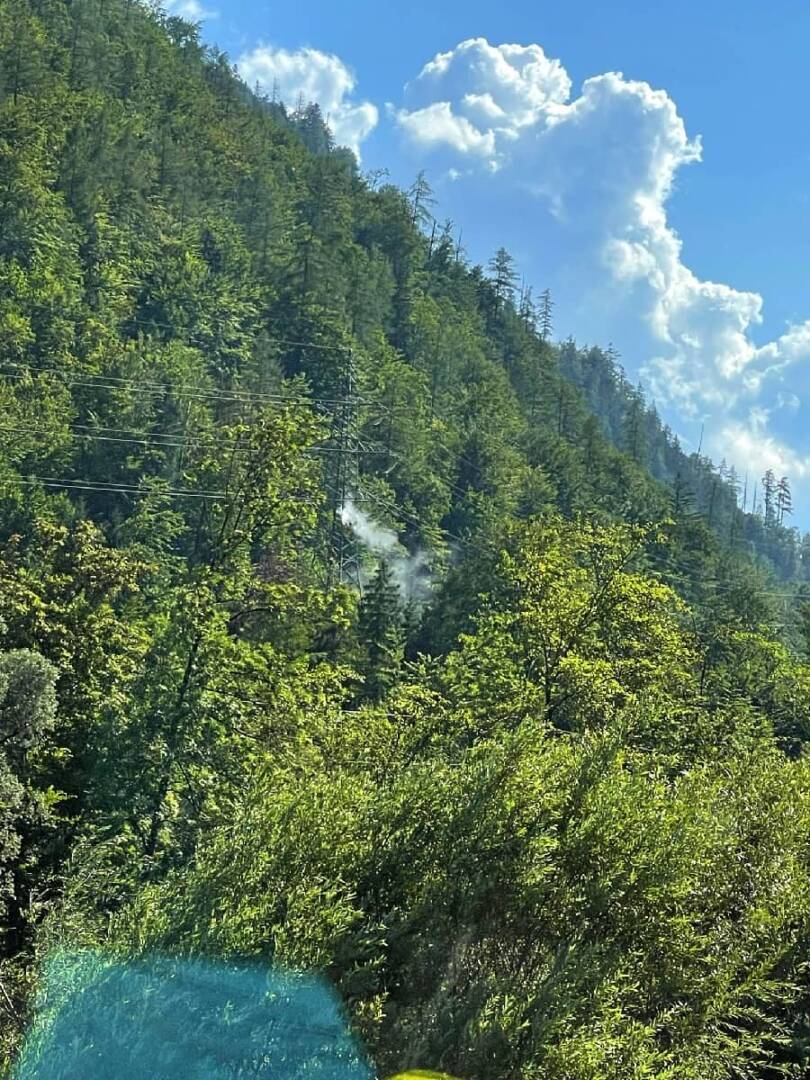Auf einem Starkstrommast reinigten zwei Arbeiter mit einem Dampfstrahler die Streben. Von der Bundesstraße her sah der dabei entstehende Wasserdampf Brandrauch täuschend ähnlich.