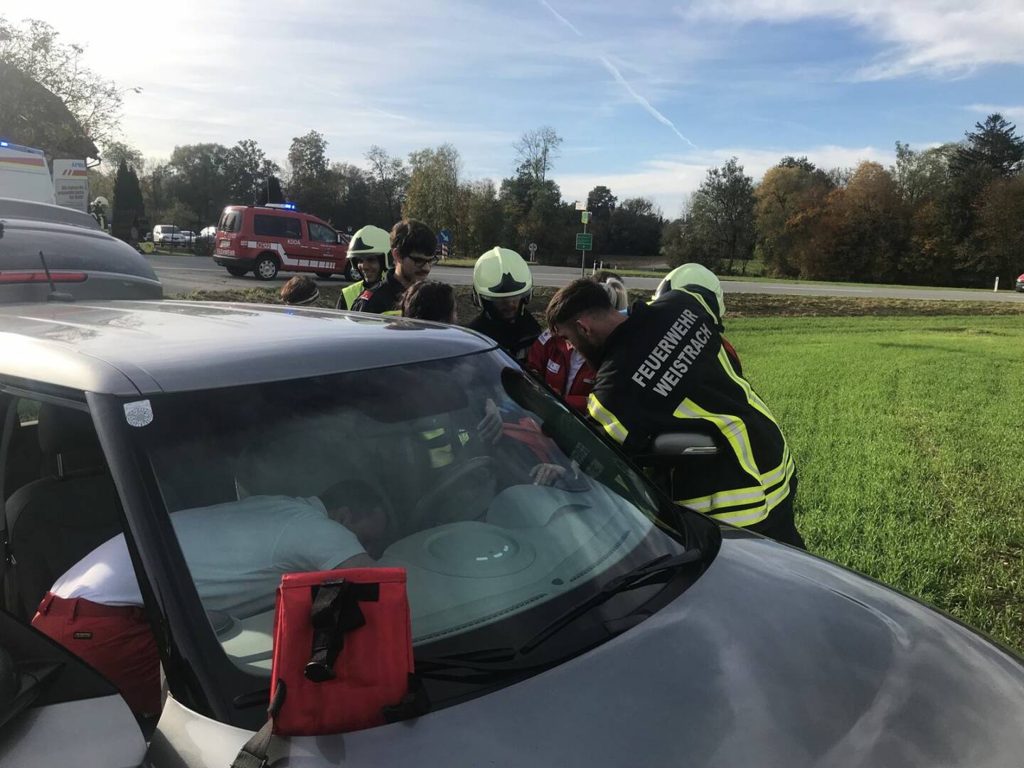 Nach der obligatorischen Absicherung der Unfallstelle und Aufbau eines Brandschutzes kümmerten sich unsere Feuerwehrsanitäter Annalena und Sebastian Pürmayr um den 67-jährigen Lenker. Da es sich um ein Elektrofahrzeug handelte wurden zusätzliche Fahrzeugabsicherungsmaßnahmen getroffen und der Stromtrennschalter mittels Rettungskarte lokalisiert.