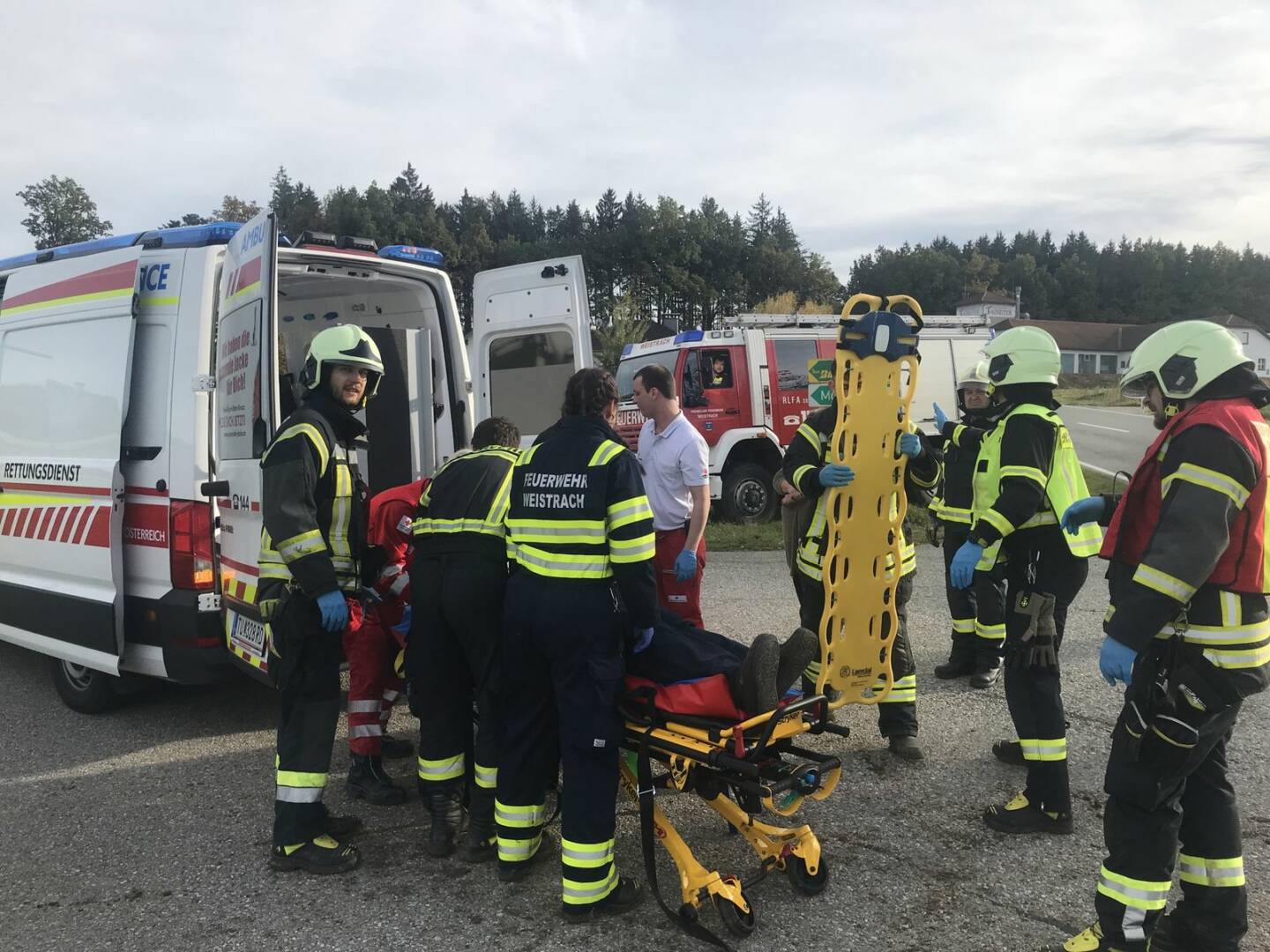 Nach Eintreffen des Roten Kreuz Haag führten wir gemeinsam die schonende Patientenrettung mittels Rettungsboa und Spineboard durch. Zusätzlich zum Rettungsteam wurden First Responder nachalarmiert welche unterstützen.