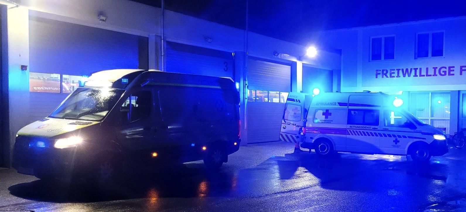 Zwei Atemschutztrupps der alarmierten Feuerwehren aus Ebenfurth und Haschendorf drangen in die Wohnung vor, löschten den Kleinbrand in der Küche und retteten den Bewohner ins Freie. Dort wurde er an den bereits eingetroffenen Rettungsdienst übergeben. Eine weitere Person musste ebenfalls vom Rettungsdienst versorgt werden, beide Patienten wurden nach der Erstversorgung in ein Spital eingeliefert.