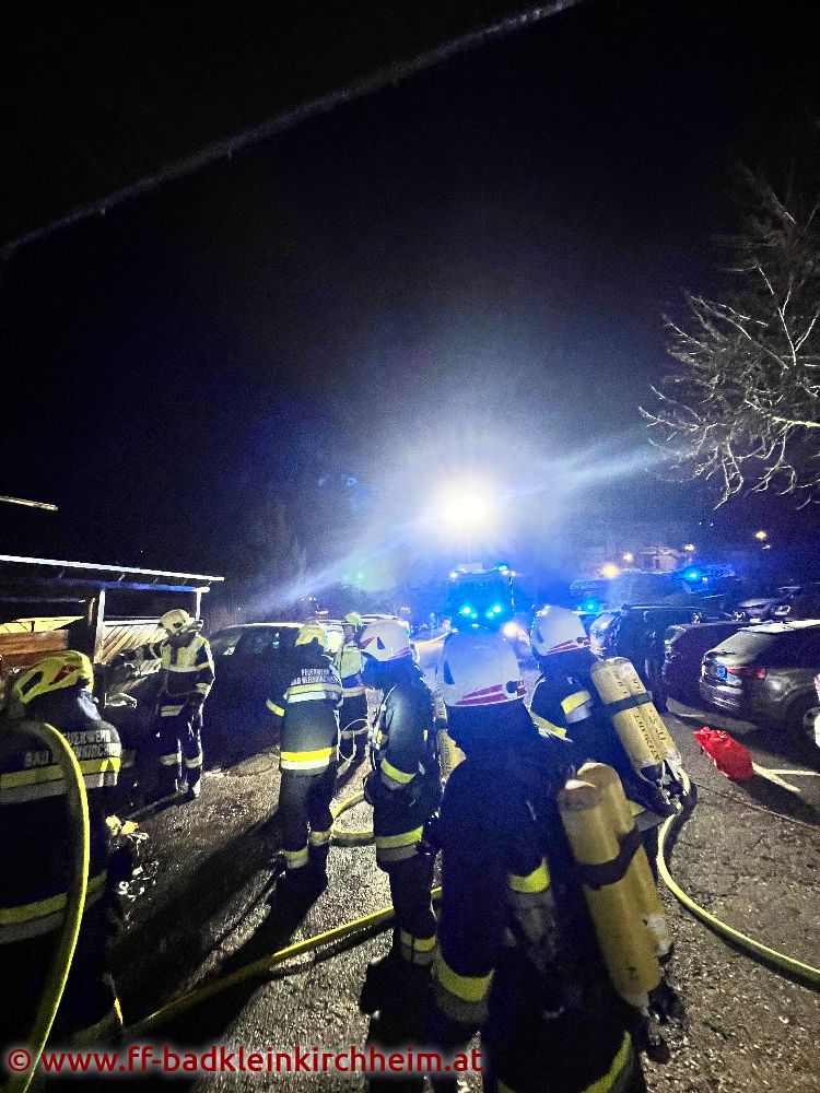 Wenige Minuten nach der Alarmierung rückte die Feuerwehr Bad Kleinkirchheim mit sämtlichen Einsatzfahrzeugen (RLFA 3000, TLFA 2000, DLK 23/12, KLFA und KRFS) zur Einsatzstelle aus. Noch während der Anfahrt formierten sich die Atemschutztrupps im RLFA 3000 und KLFA Bad Kleinkirchheim.