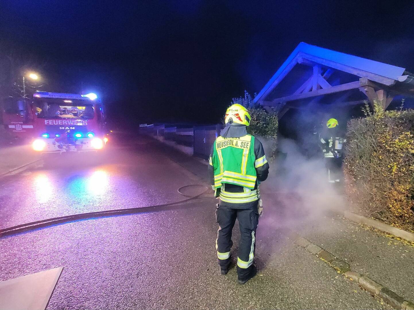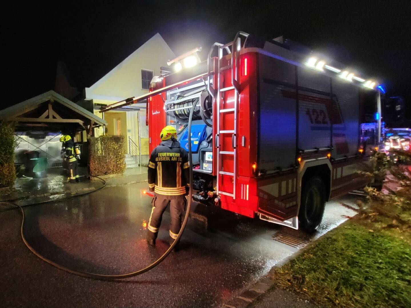 Am 07. Jänner 2024 kurz vor 3 Uhr früh eilten 29 Mitglieder der Freiwilligen Feuerwehr Neusiedl am See mit sechs Fahrzeugen zu einem alarmierten Garagenbrand in die Josef-Haydn-Gasse. Beim Eintreffen am Einsatzort konnte jedoch schnell festgestellt werden, dass es sich „nur“ um einen Mülltonnenbrand unter einem Carport handelte. Die genaue Brandursache ist nicht bekannt.