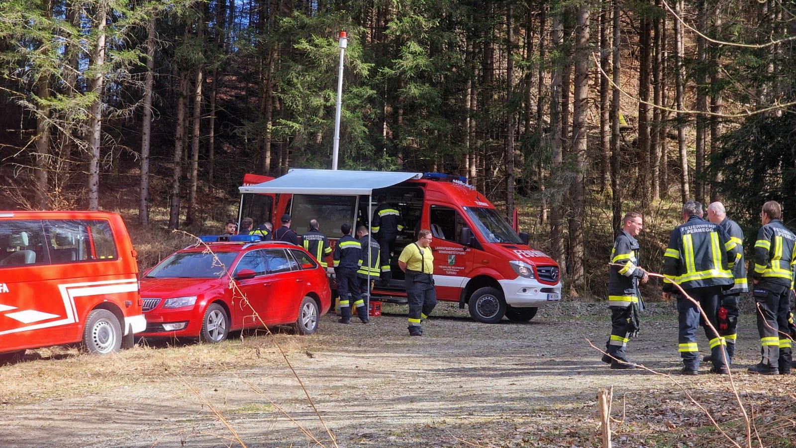 Im Einsatz standen die ortszuständige Feuerwehr Pernegg und das ELF BFV BM mit Stützpunkt in Turnau mit mehreren Drohnenpiloten des Bereichsfeuerwehrverbandes Bruck. Auch von der FF Kapfenberg-Diemlach war ein Drohnenpilot im Einsatz.