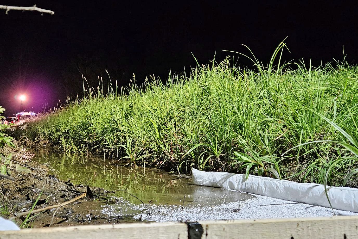Nachdem der brennende PKW in unmittelbarer Nähe zu einem Kanalschacht zum Stillstand kam, gelangte eine geringe Menge Dieselkraftstoff in die Kanalisation und in weiterer Folge in den „Sieghartser Bach“. Die Einsatzkräfte errichteten noch während dem Brandeinsatz eine Ölsperre und dichteten die Kanalschächte ab.