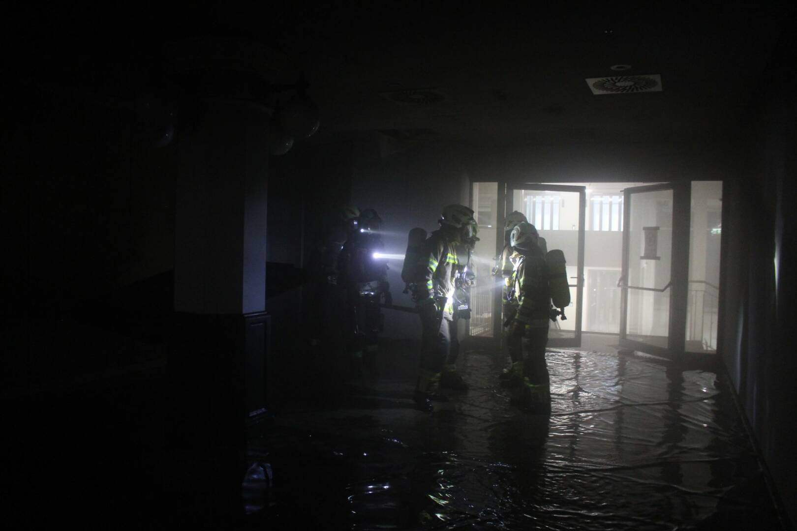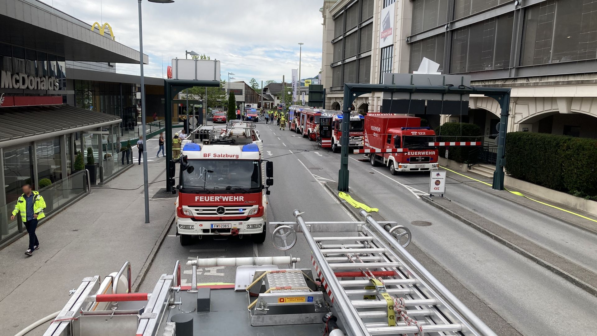 Umgehend wurden die betroffenen Gebäude evakuiert und mit der Brandbekämpfung und Entrauchung begonnen. Um ausreichend Atemschutzgeräteträger zur Verfügung zu haben, wurden die Alarmstufe bis auf 4 erhöht. Insgesamt kamen zwölf Atemschutztrupps zur Brandbekämpfung zum Einsatz. Zur weiteren Unterstützung wurde ein Löschunterstützungsfahrzeug (Sonderfahrzeug) der Berufsfeuerwehr Salzburg angefordert.