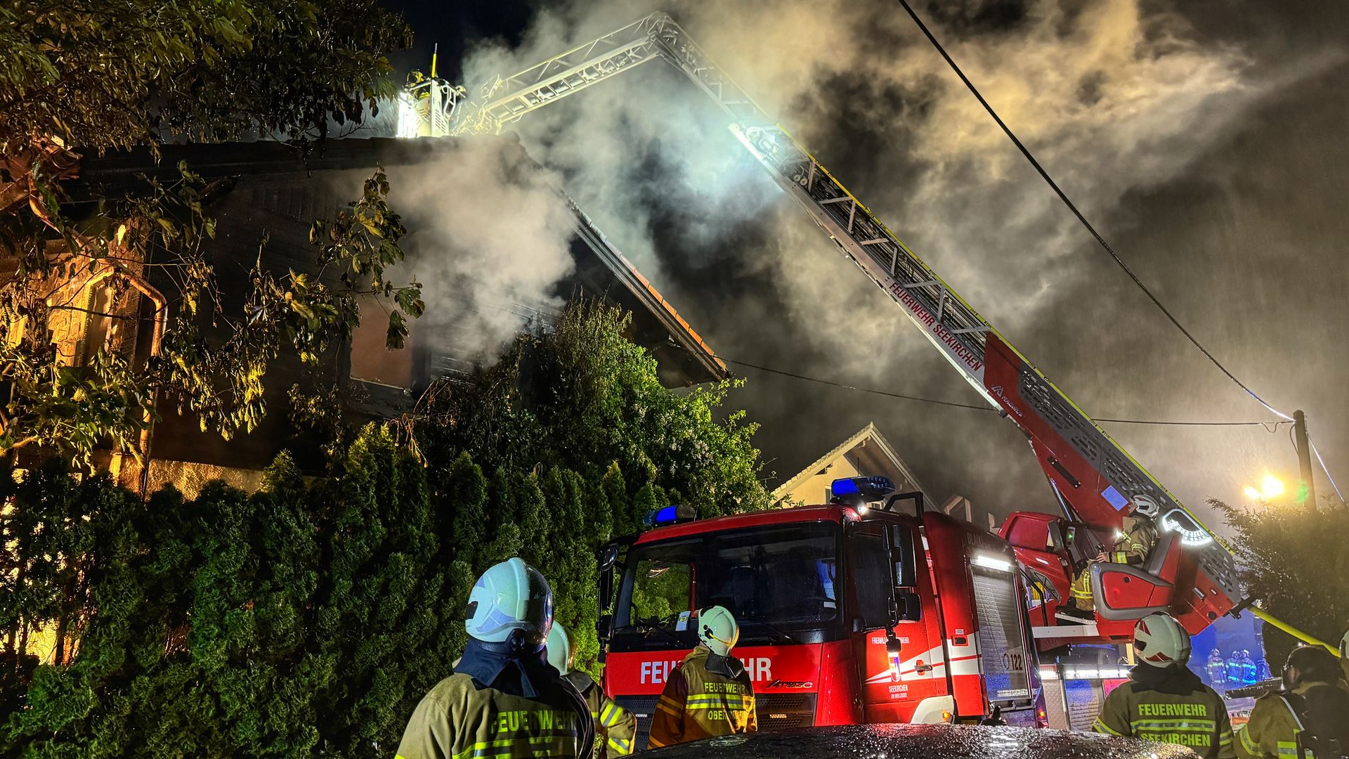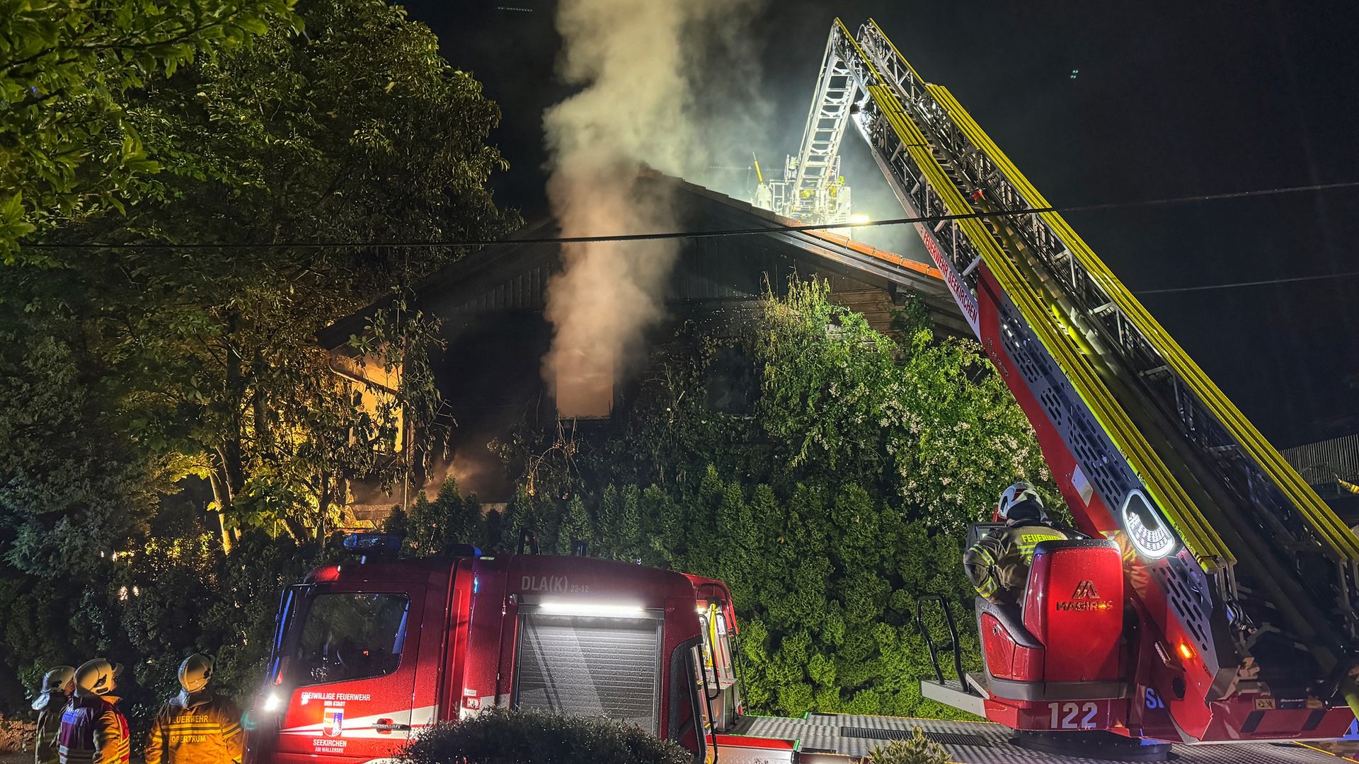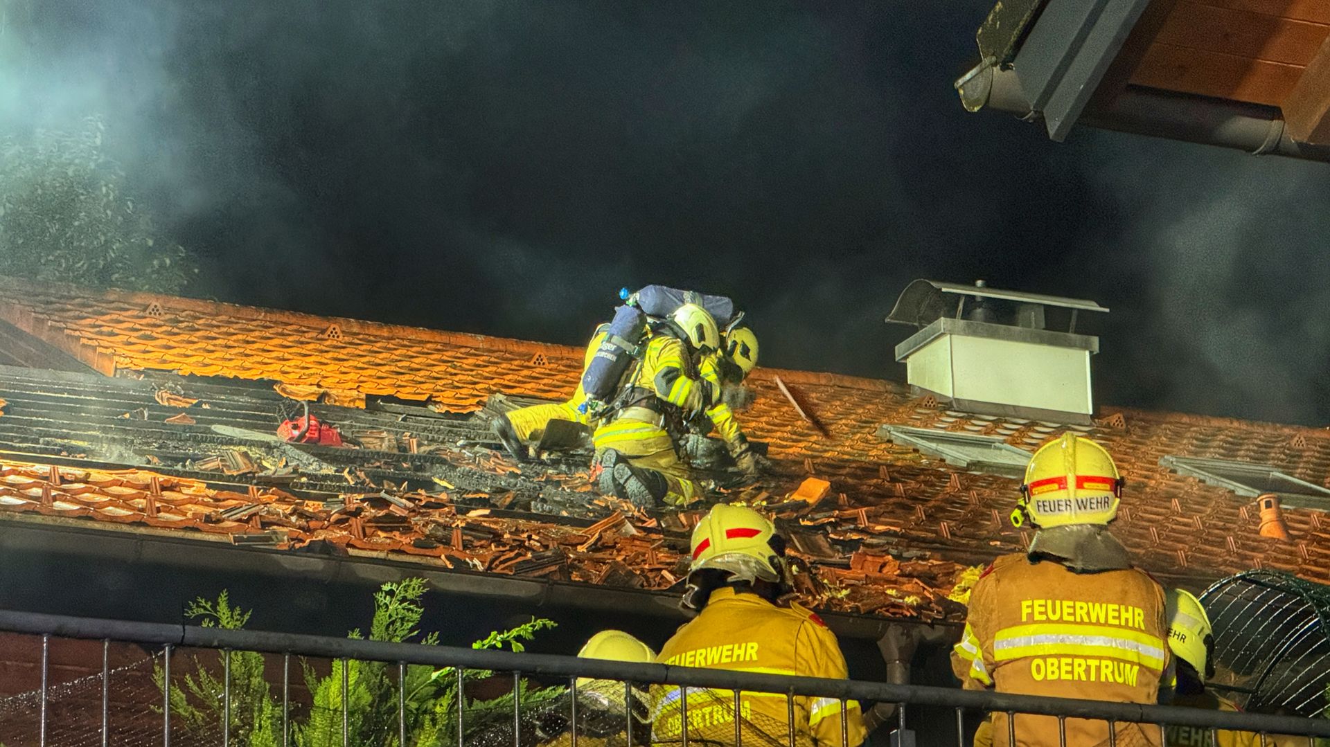 Zu einem Dachstuhlbrand wurde die Freiwillige Feuerwehr Obertrum am See am 1. Juni 2024 um 20:50 Uhr in die Lindenhofsiedlung alarmiert. Bereits bei der Anfahrt war eine Rauchwolke ersichtlich. Beim Eintreffen der ersten Einsatzkräfte stand der Anbau über der Garage bereits in Vollbrand. Nach einer ersten Lageerkundung durch den Einsatzleiter wurde aufgrund der Rauchentwicklung umgehend Alarmstufe 2 ausgelöst.