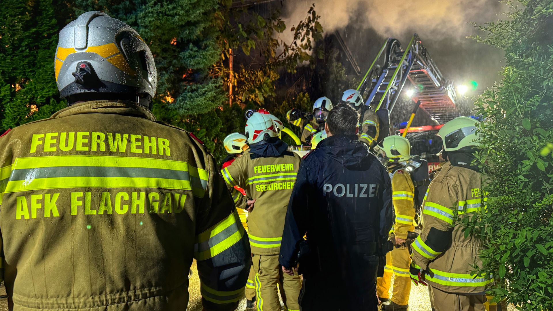 Das Dach wurde mit Hilfe der Drehleiter Seekirchen geöffnet, um zum Brandherd vorzudringen. Gleichzeitig wurde mit einem Außenangriff gestartet. So konnte der Brand rasch unter Kontrolle gebracht werden. Es konnte auch ein Innenangriff vorgenommen werden. Insgesamt wurden hierfür fünf Atemschutztrupps eingesetzt. Nach den Nachlöscharbeiten wurde das Dach provisorisch mit Planen abgedeckt. Durch das schnelle Eingreifen der Einsatzkräfte konnte ein Ausbreiten der Flammen verhindert werden.