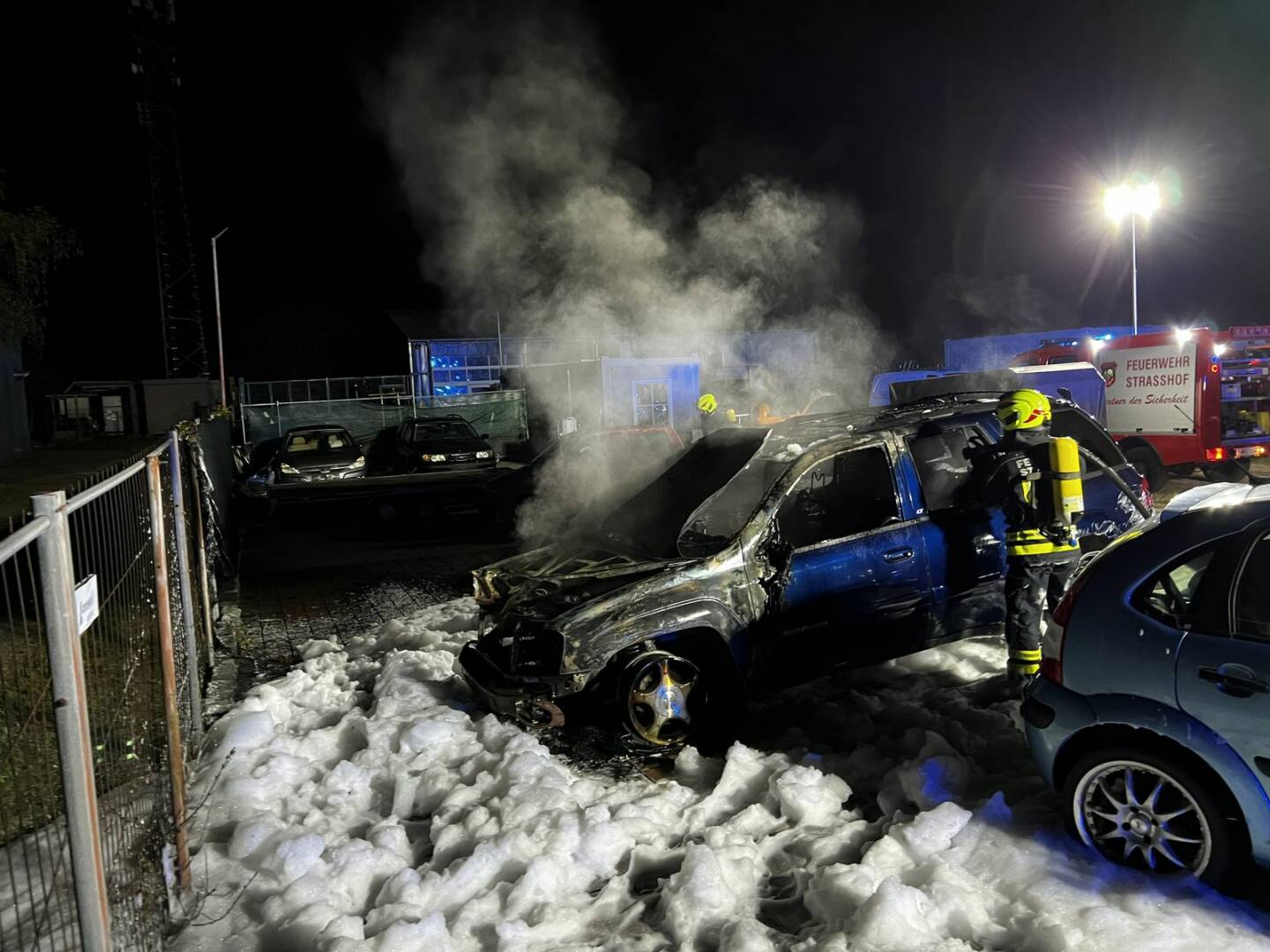 In der Nacht des 18.September 2024 wurde die Feuerwehr Strasshof gemeinsam mit der Feuerwehr Deutsch-Wagram um 01:11 Uhr zu einem Fahrzeugbrand auf die Hauptstraße alarmiert. Auf dem Gelände eines Autohändlers stand aus bisher ungeklärter Ursache ein Fahrzeug in Vollbrand.