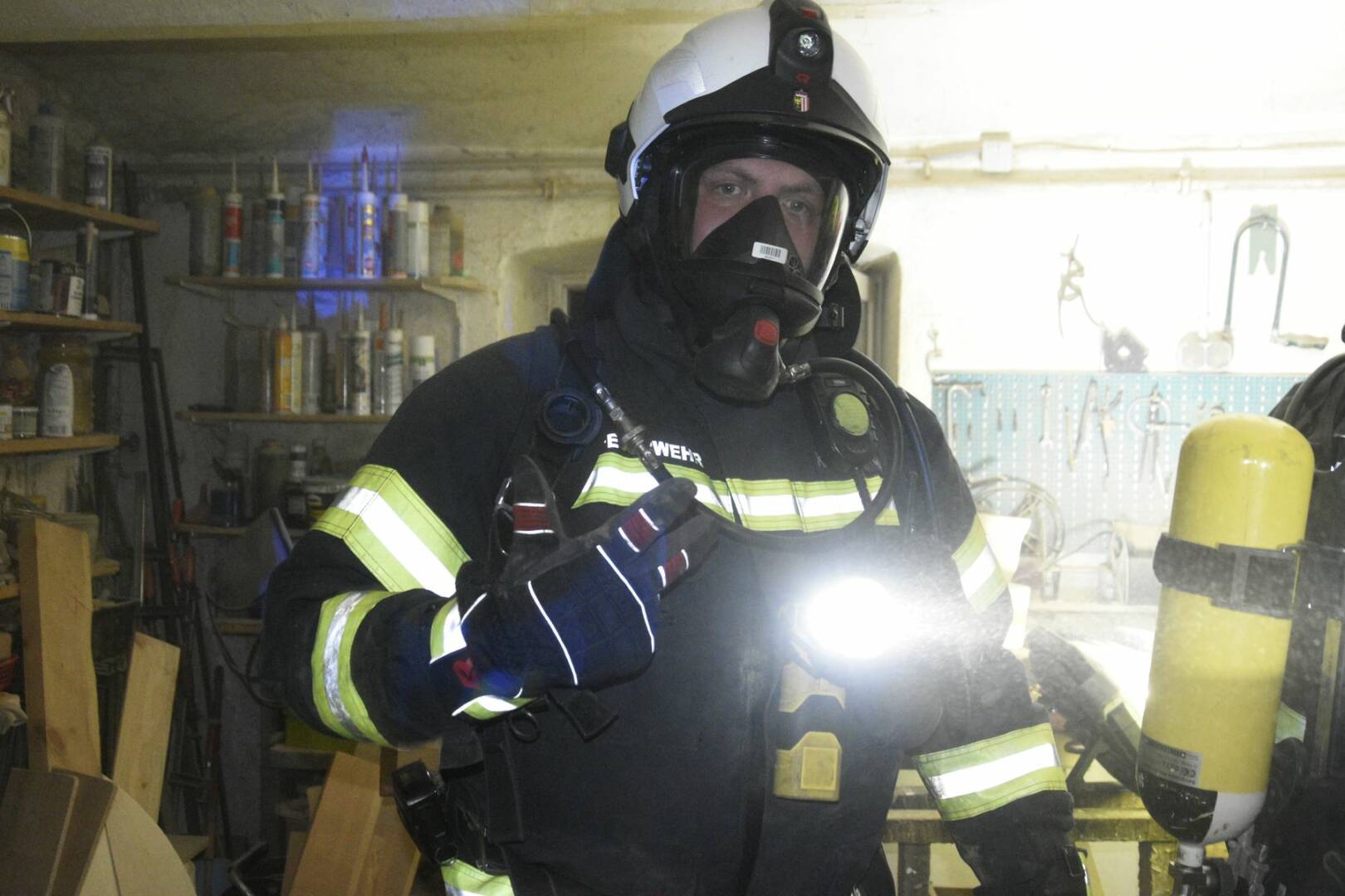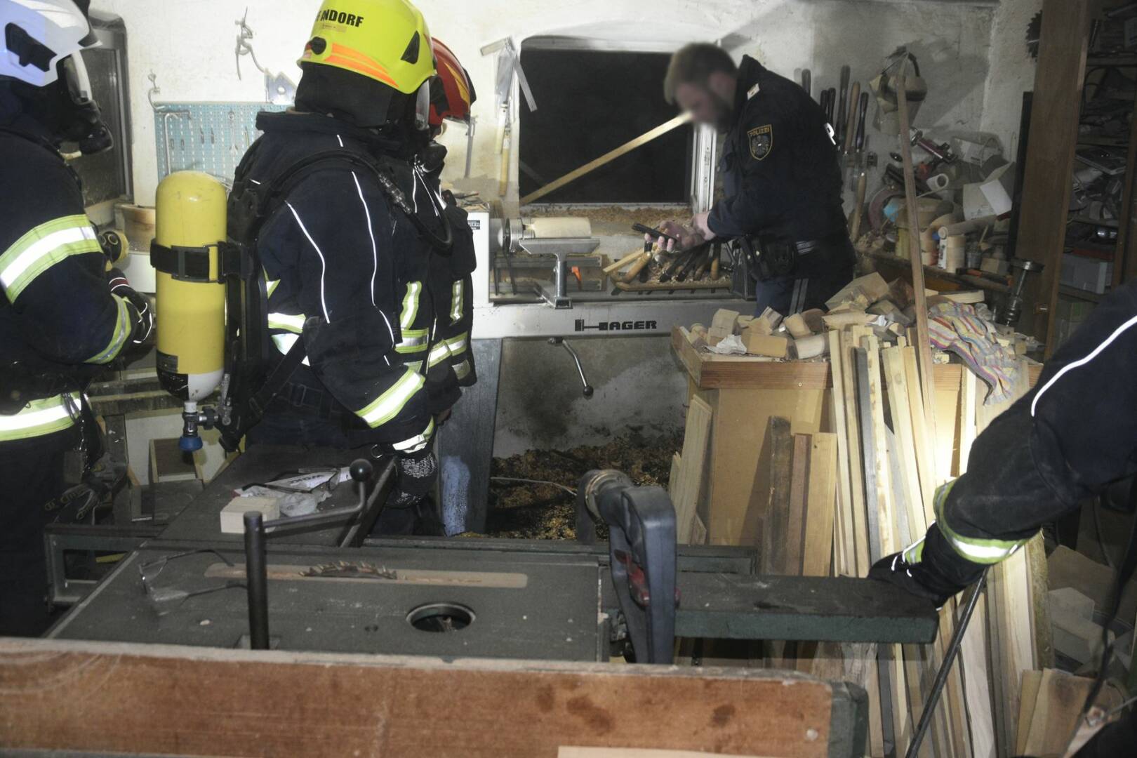 Der Brandherd wurde bei einer Drechselbank lokalisiert, wo sich auf einer Fläche von knapp zwei Quadratmetern bei darunterliegenden Spänen ein Glimmbrand entwickelte. Nach dem Ablöschen des Brandes wurde vom Atemschutztrupp eine Abluftöffnung geschaffen und mit einem vor dem Eingang platzierten Hochleistungslüfter konnte anschließend der Brandrauch aus der Werkstatt gedrückt werden. Für den Fall einer Ausbreitung des Brand wurden parallel eine weitere Angriffsleitung mit einem C-Strahlrohr in Stellung gebracht sowie weitere Atemschutztrupps für den Einsatz vorbereitet.