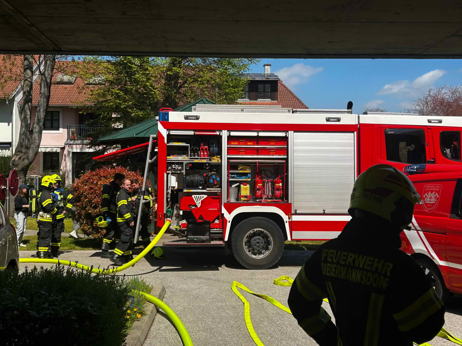 Unverzüglich wurde die Alarmstufe erhöht und die Feuerwehren Laxenburg, Vösendorf und Wiener Neudorf nachalarmiert.